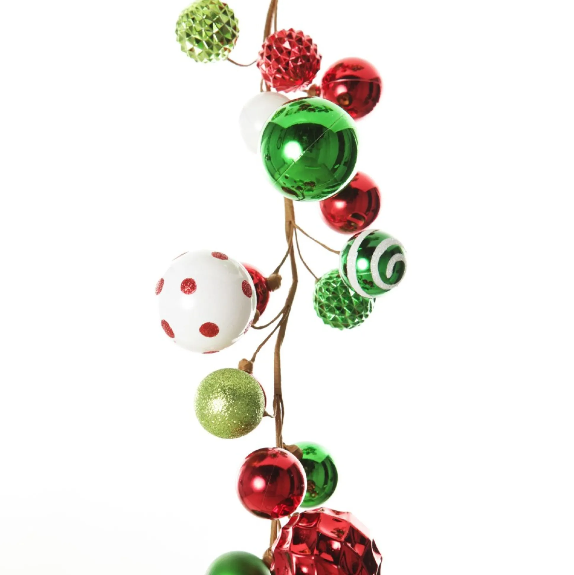 Add Whimsy To Your Festive Decor With This Bright Fun Red Green And White Bauble Christmas Garland. Crafted From A Collection Of Vibrant Red, Green, And White Baubles With Glitter, Polka Dot Patterns, And Textured Details. Garlands Are The Perfect Way To Instantly Bring Christmas Cheer To Any Space In Your Home.