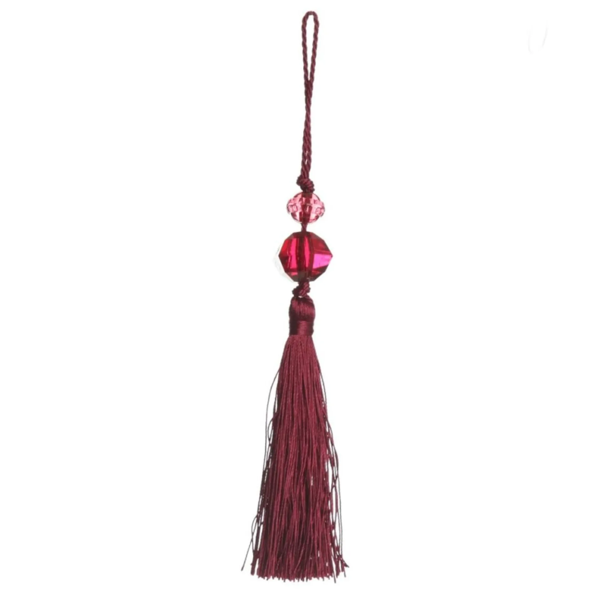 This Beautiful Burgundy Tassle With Bead Is Just The Finishing Touch To Take Your Christmas Decor To The Next Level With A Touch Of Elegance And Glamour. Made From A Silky Thread And Finished With Translucent Coloured Beads This Tassle Measures At 20.5Cm In Length, Including Hanger. Use Them As Part Of Your Christmas Tree Decorations Or As Part Of Your Christmas Table Decor.