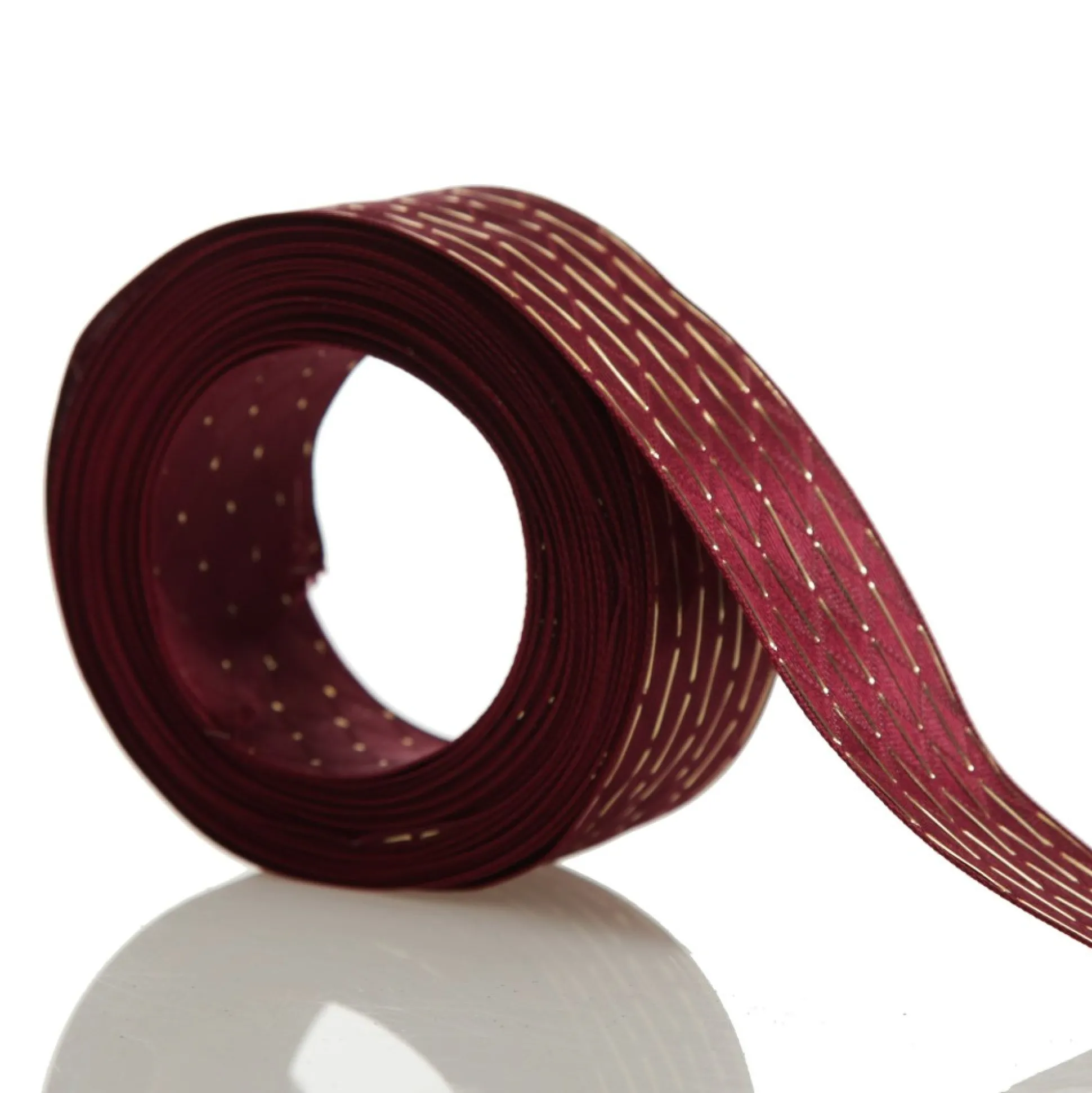 Burgundy Wired Christmas Ribbon with Gold Flecks – 3.8cm Ribbons|