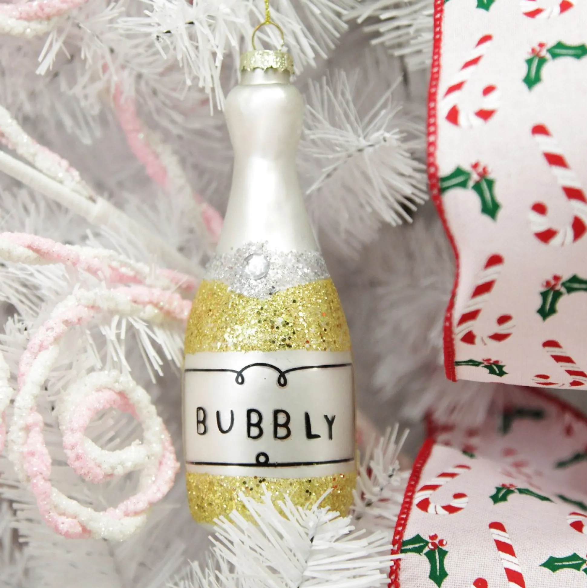 Pop The Bubbles And Celebrate In Style With Our Champagne Bottle Gold Glitter Bubbly Glass Tree Decoration. Crafted From Delicate Glass, This Champagne Bottle Decoration Features Gorgeous Gold Glitter, A Hand-Crafted ‘Bubbly’ Label, And Jewel Embellishment.