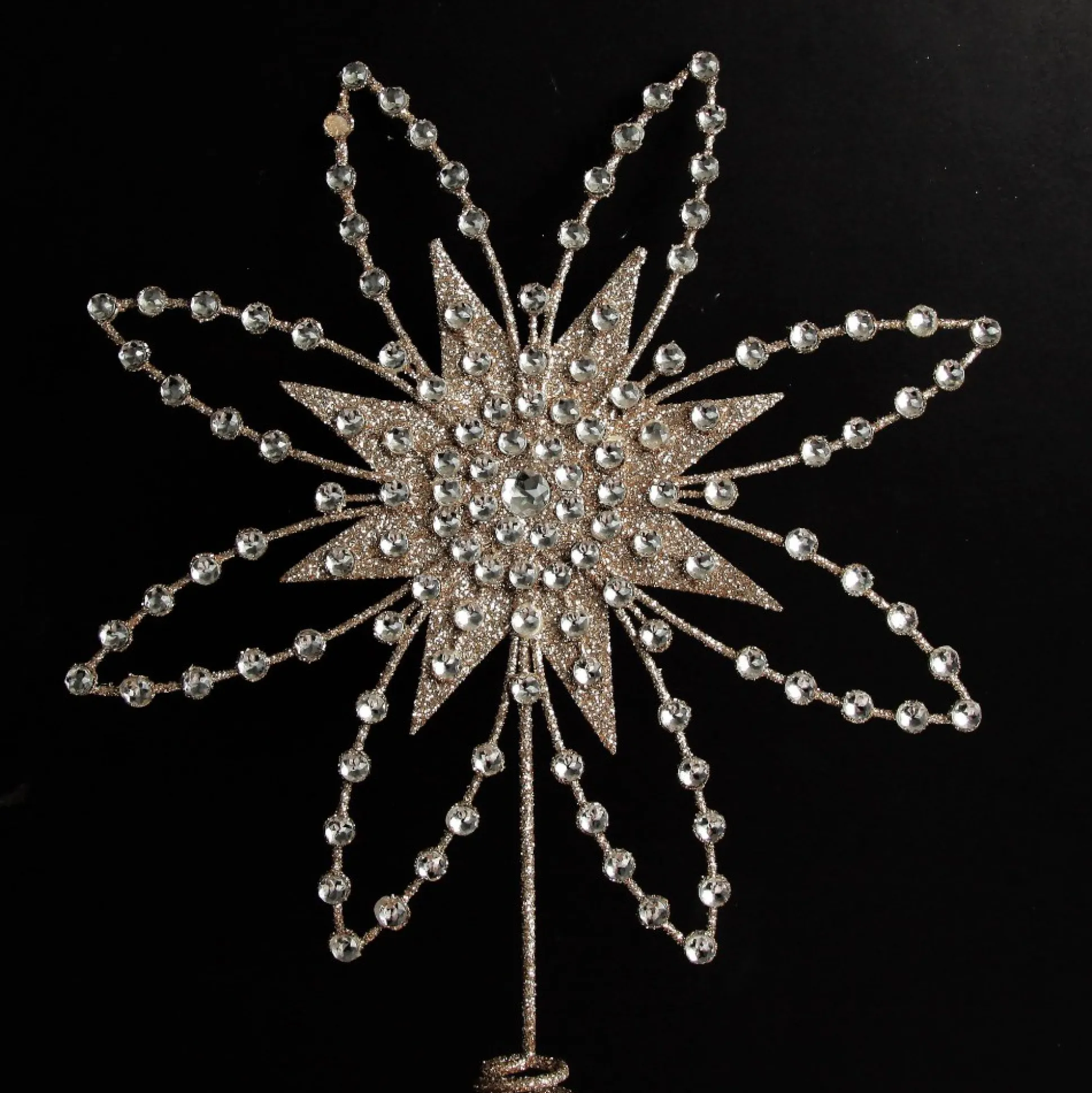 Enrich Your Christmas Tree With Elegance And Class With Our Elegant Metal And Jewel Tree Topper. This Exquisite Tree Topper Is Crafted From Lightweight And Durable Acrylic, And Finished With Glitter For A Luxurious And Opulent Look. The Perfect Finishing Touch For Your Christmas Tree, That Will Help You Add To Your Stylish Christmas Decorating Style.
