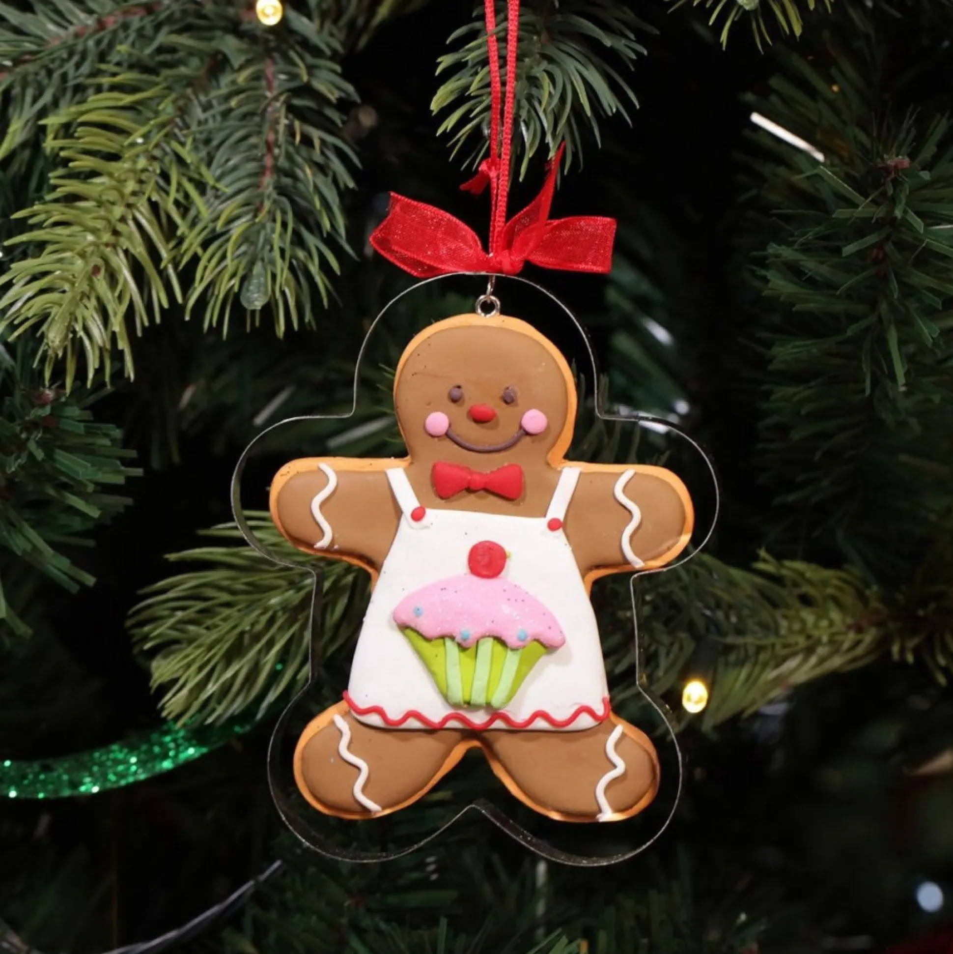 This Fun Gingerbread Man Cookie Cutter Decoration Almost Looks Good Enough To Eat. Featuring A Gingerbread Man Shaped Polymer Clay Cookie, Decorated In A Cupcake Apron Inside A Cookie Cutter. Includes Festive Red Ribbon To Hang From Your Tree. Measures 9X10Cm.