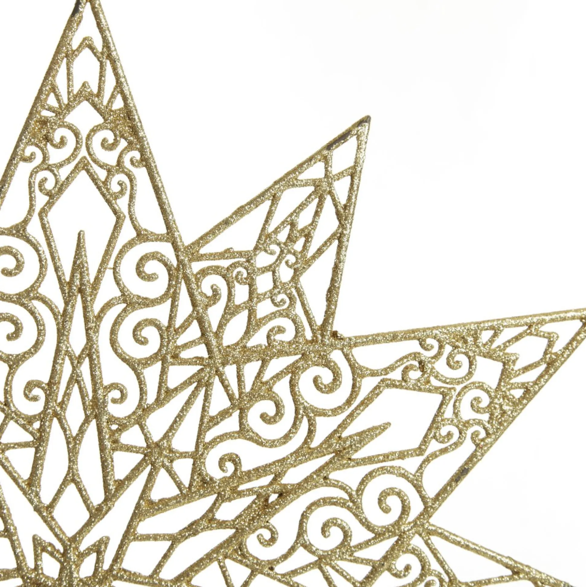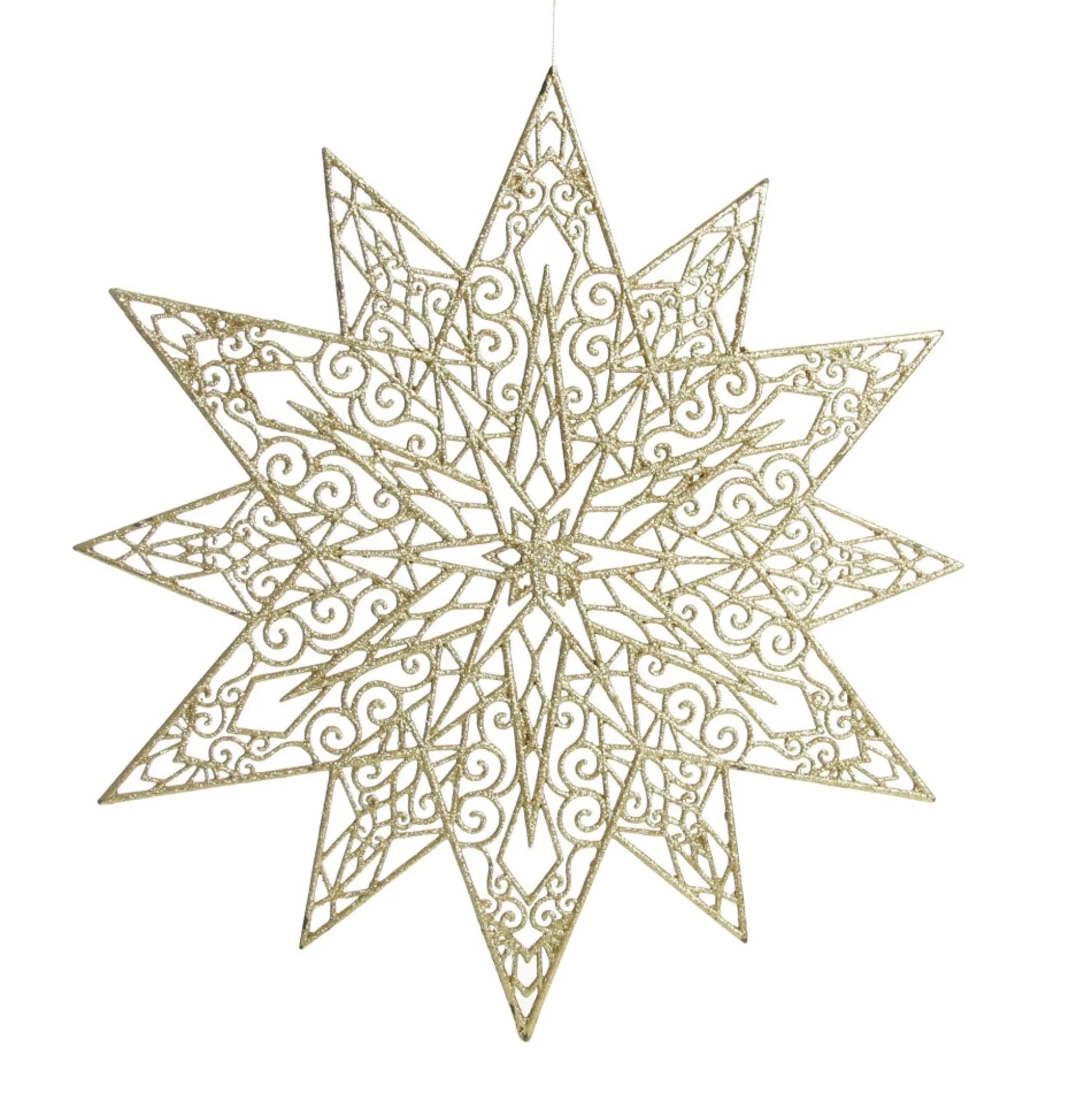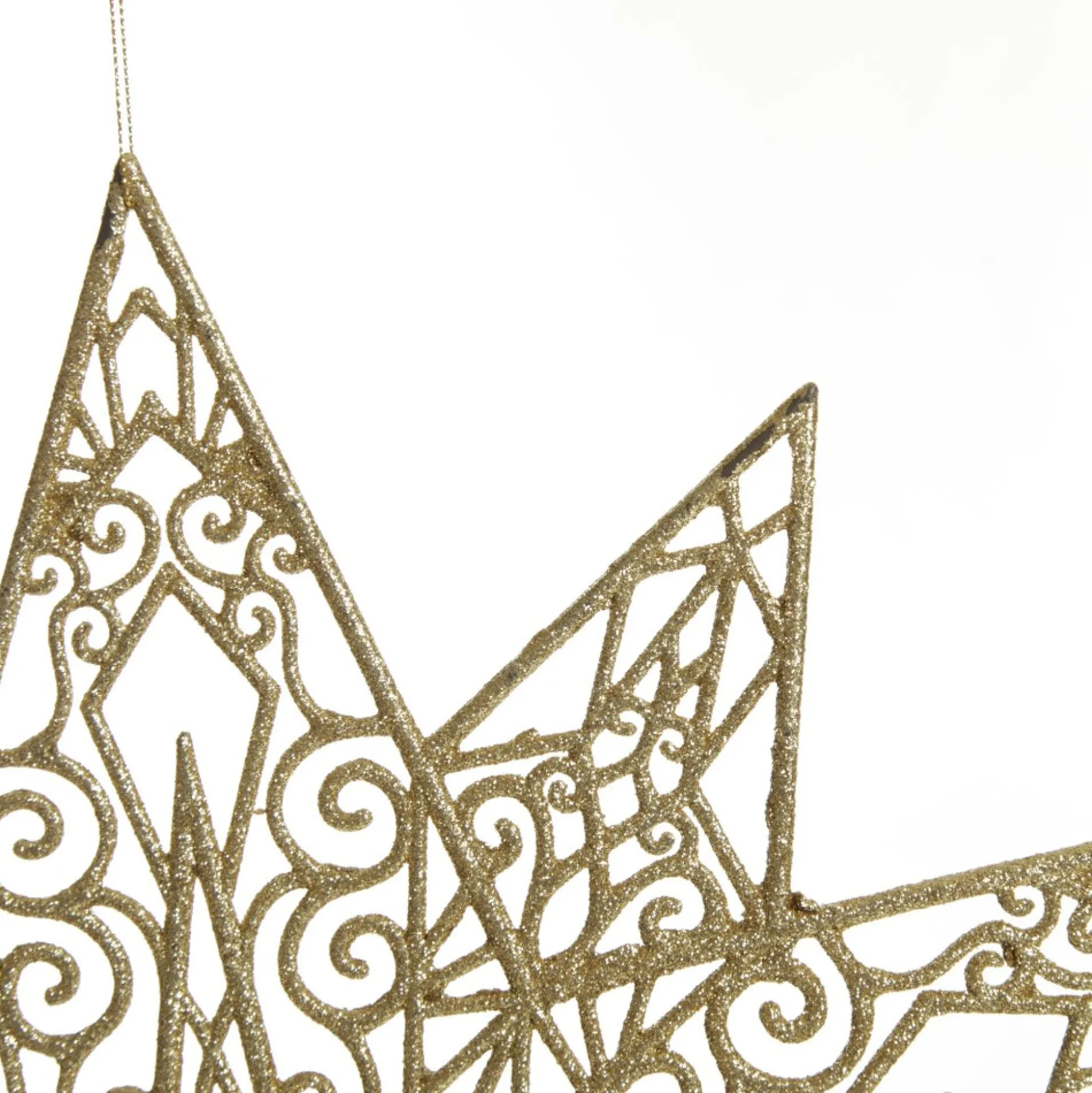 Create A Unique Festive Display In Your Home With This Gold Glitter Hanging Christmas Star. Featuring An Intricately Cut Pattern Of Swirls And Layered Stars, Finished With A Sparkling Coat Of Gold Glitter. A String Attached To The Top Makes It Easy To Hang Wherever You Choose.