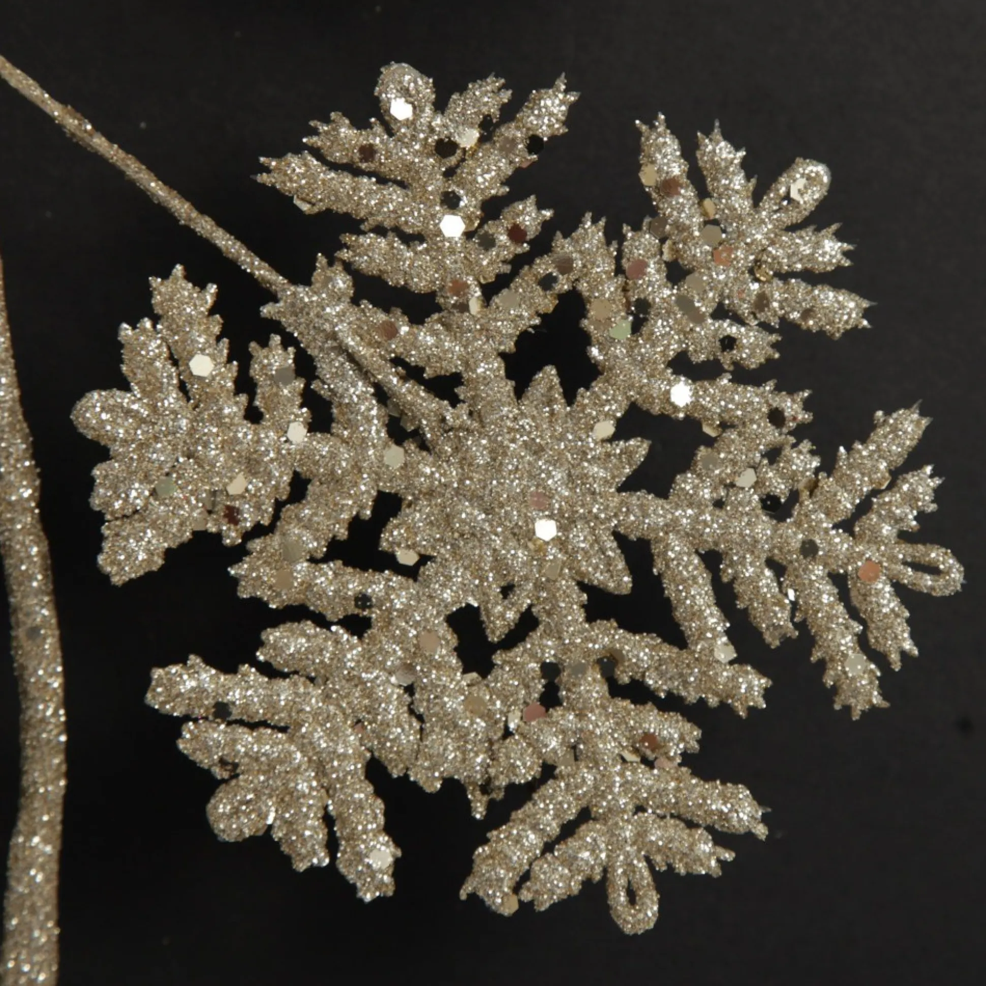 Bring Christmas Winter Wonderland Vibes To Your Festive Displays With This Gold Glitter Snowflake Christmas Spray. Crafted With A Durable And Flexible Stem, This Spray Features A Collection Of Intricate Snowflakes Coated In Stunning Gold Glitter.