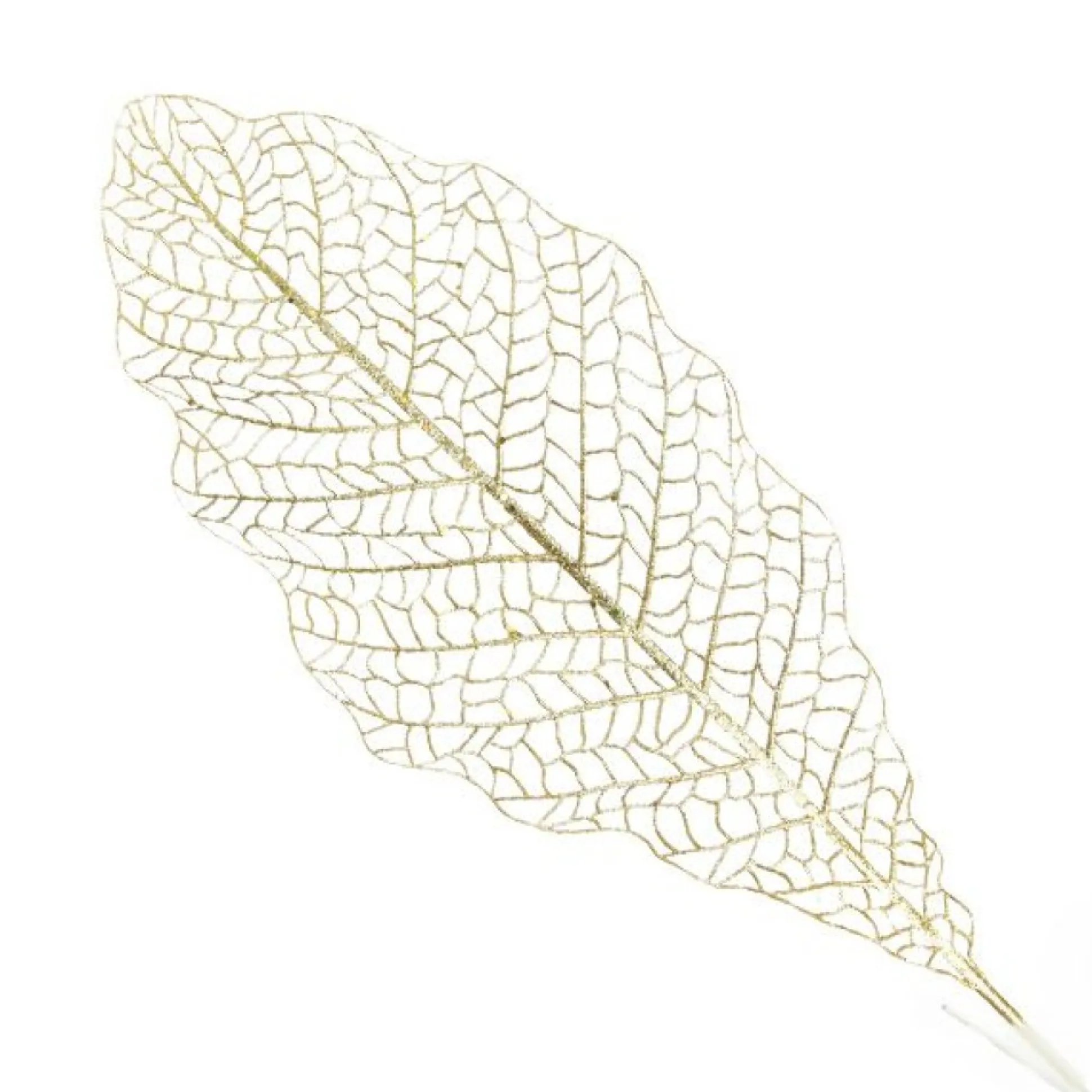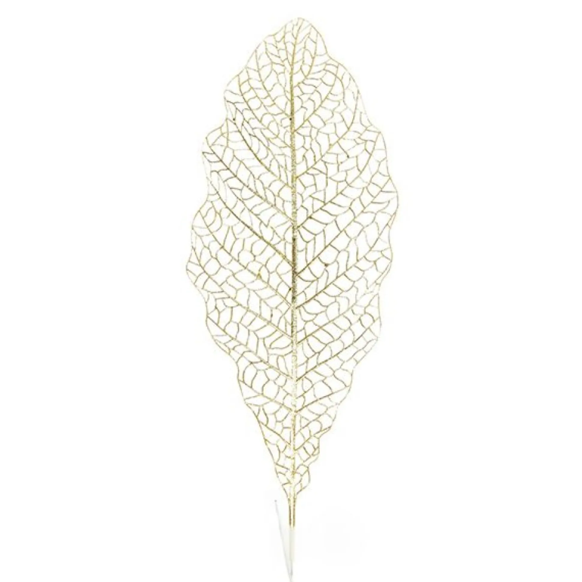 Sparkling Gold Mesh Palm Leaf Pick With Glitter Finish Ideal For Christmas Arrangements, Tree Toppers Or To Embellish Your Christmas Tree. Size: 83Cm Long And 25Cm Wide