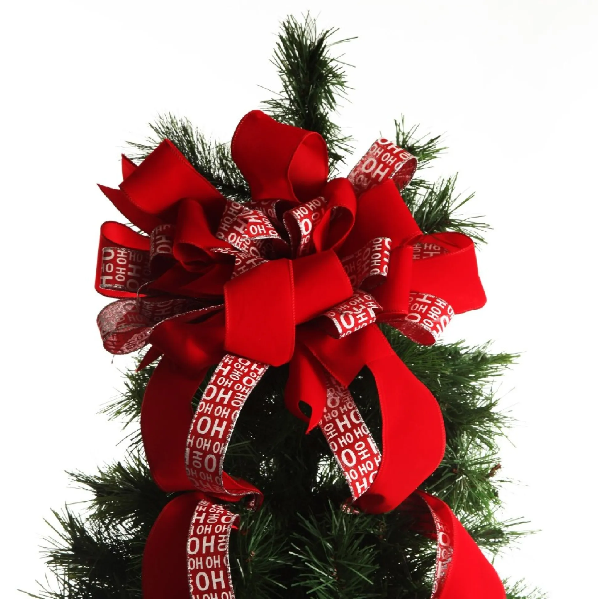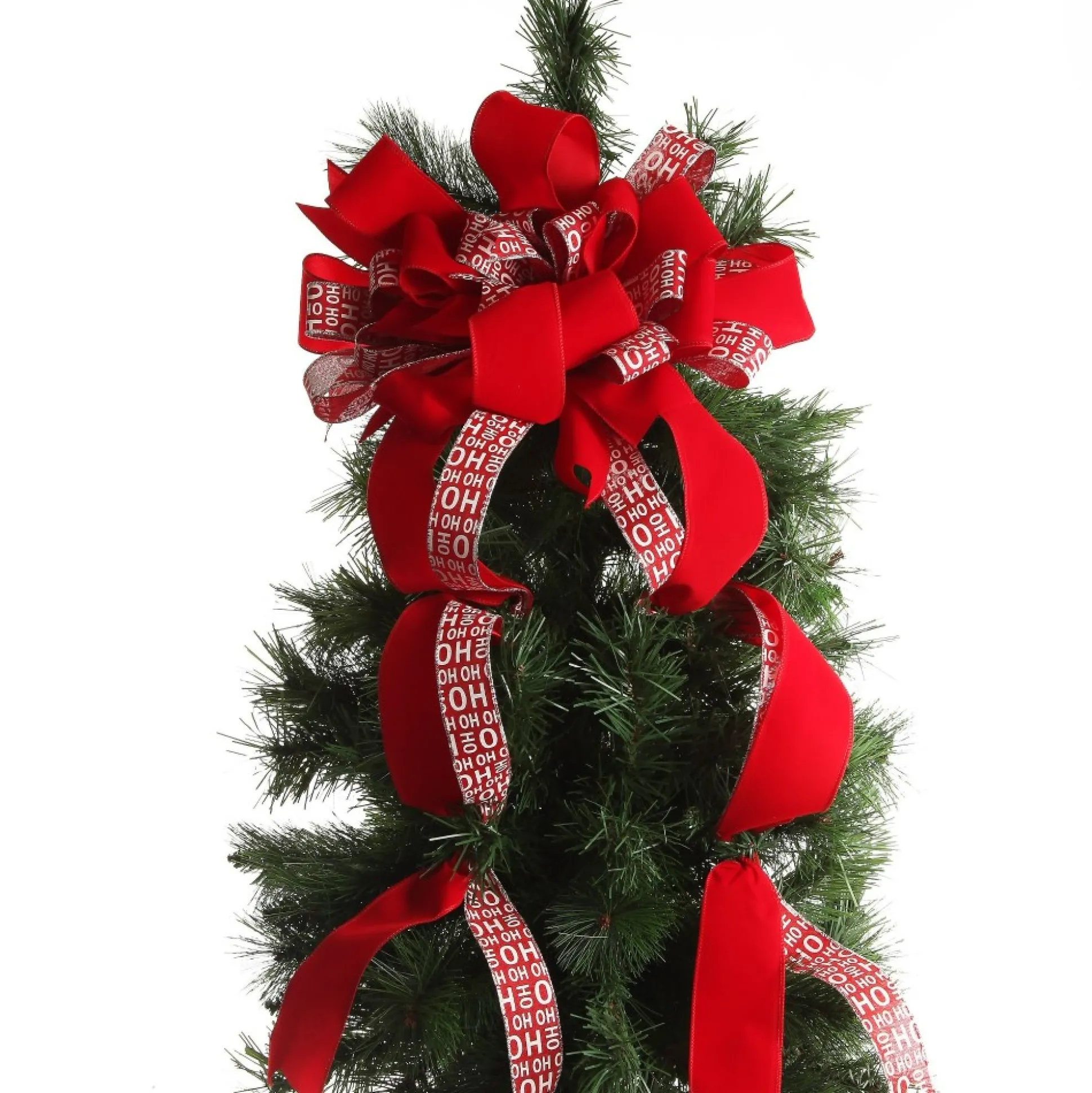 Bring The Festive Charm With Our Ho Ho Ho Deluxe Tree Topper Bow With Streamers. This Stunning Bow Has Been Handcrafted Into Intricate Lush, Layered Loops, Creating A Striking Arrangement, With The Ribbon ‘streamers’ Hanging Down For Added Texture. Featuring A Traditional And Bold Red And White Colour Palette And Fun Printed ‘Ho Ho Ho’ Texts, This Decor Element Will Be An Eye-Catching Addition To Your Home, Giving You The Chance To Bring The ‘Merry’ In Merry Christmas!