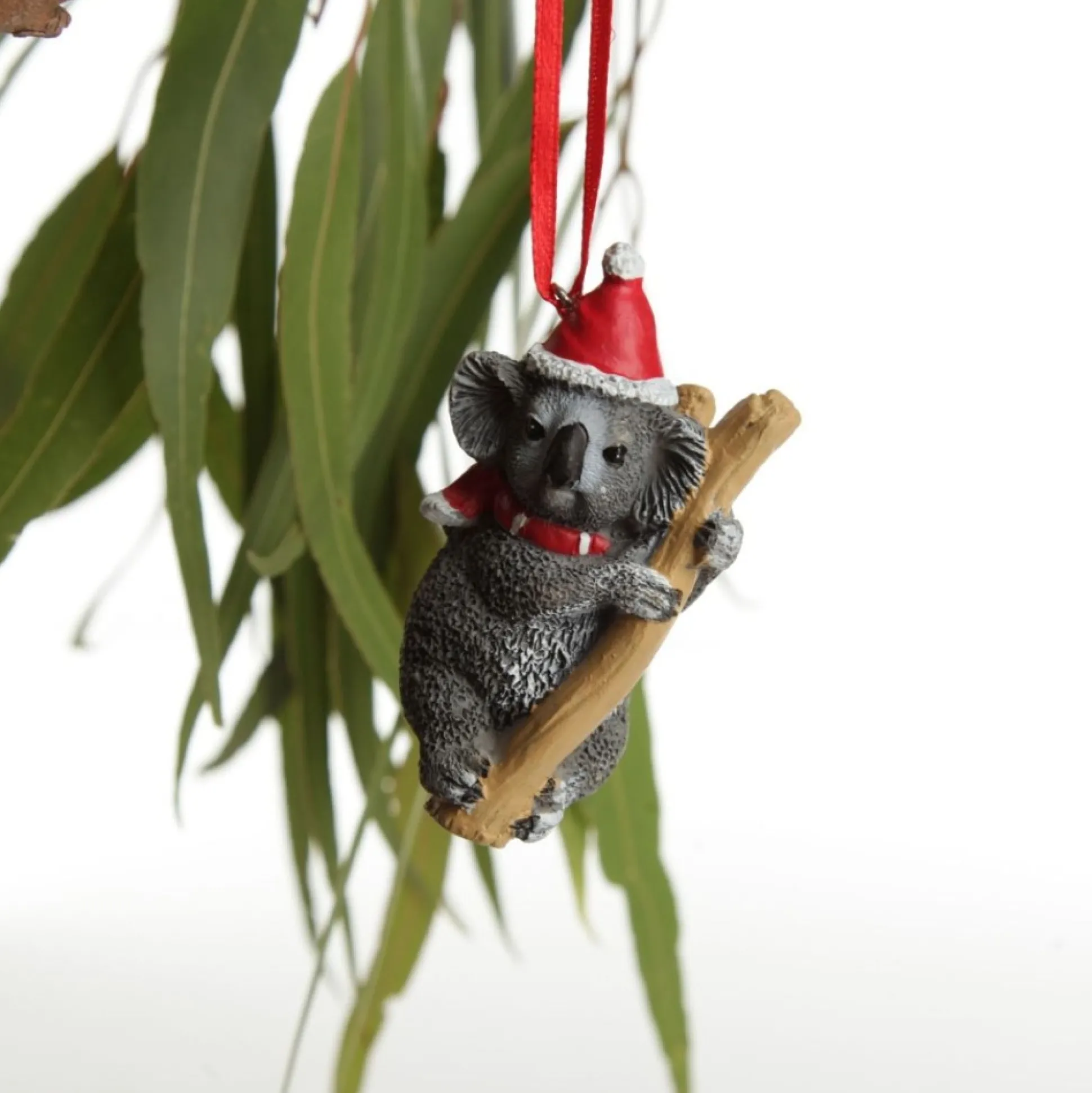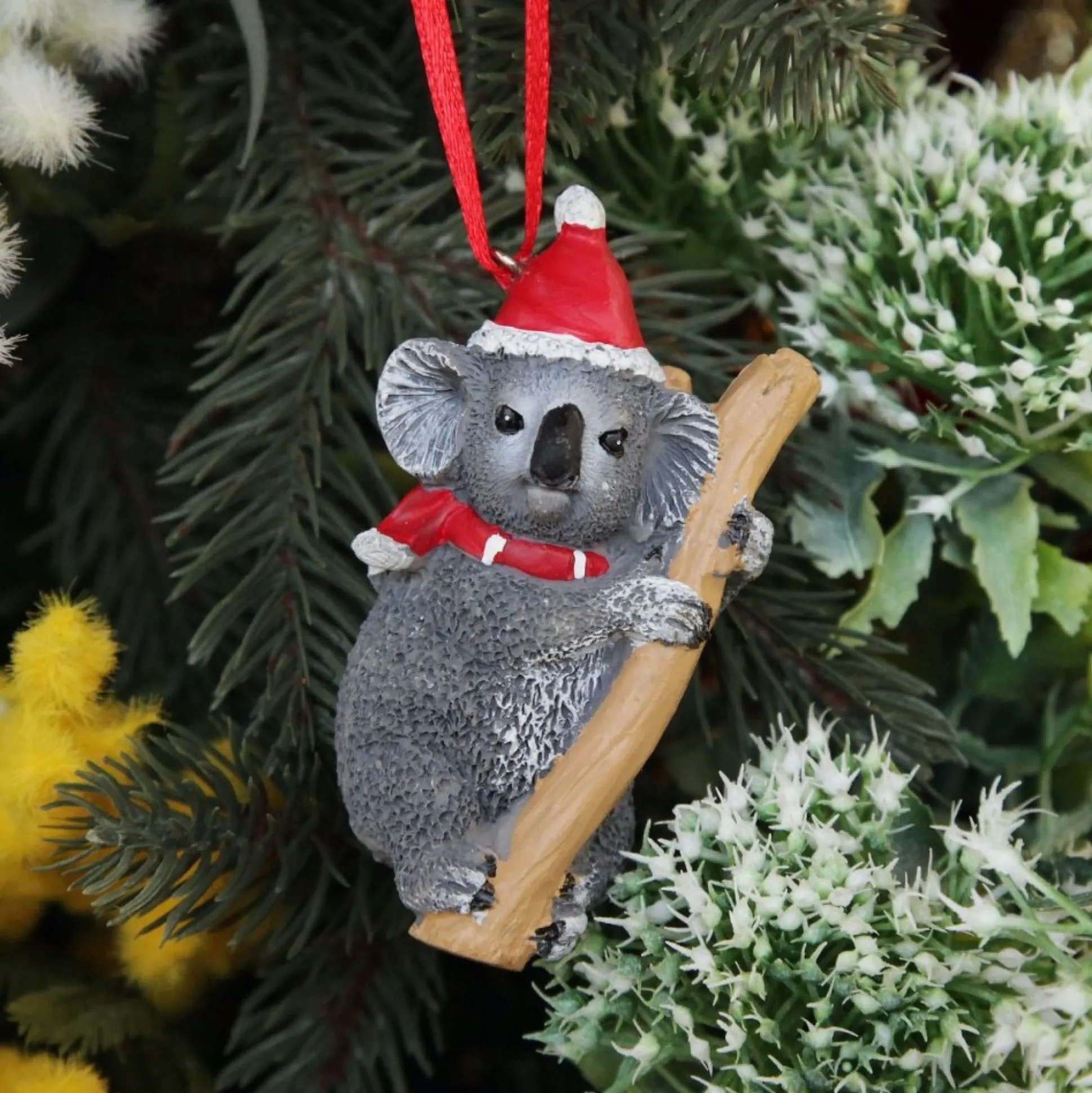 Add A Real Touch Of Australiana To Your Tree With This Koala Australiana Christmas Tree Decoration. Made From Polyresin With A Textured Finish, This Cute And Cuddly Koala Is Wearing A Red And White Scarf And A Red Santa Hat. This Decoration Measures At 8Cm And Comes Complete With A Red Ribbon For Hanging. Hang From Your Tree With Other Pieces From Our Range Of Australian Fauna To Create A Traditional Aussie Christmas Theme. Perfect For An Australiana Themed Christmas. Bring The True Aussie Christmas Spirit To Your Home This Season With This Fun Koala Australiana Christmas Tree Decoration.