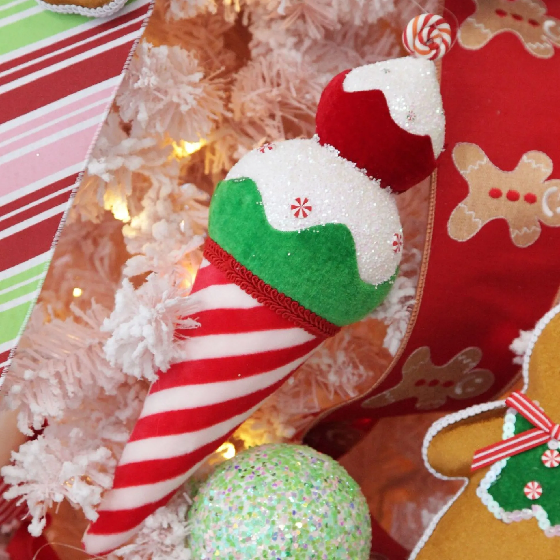 Create A Delightful Candy Filled Christmas Display With Our Velvet Candy Cane Ice Cream Cone Christmas Decoration