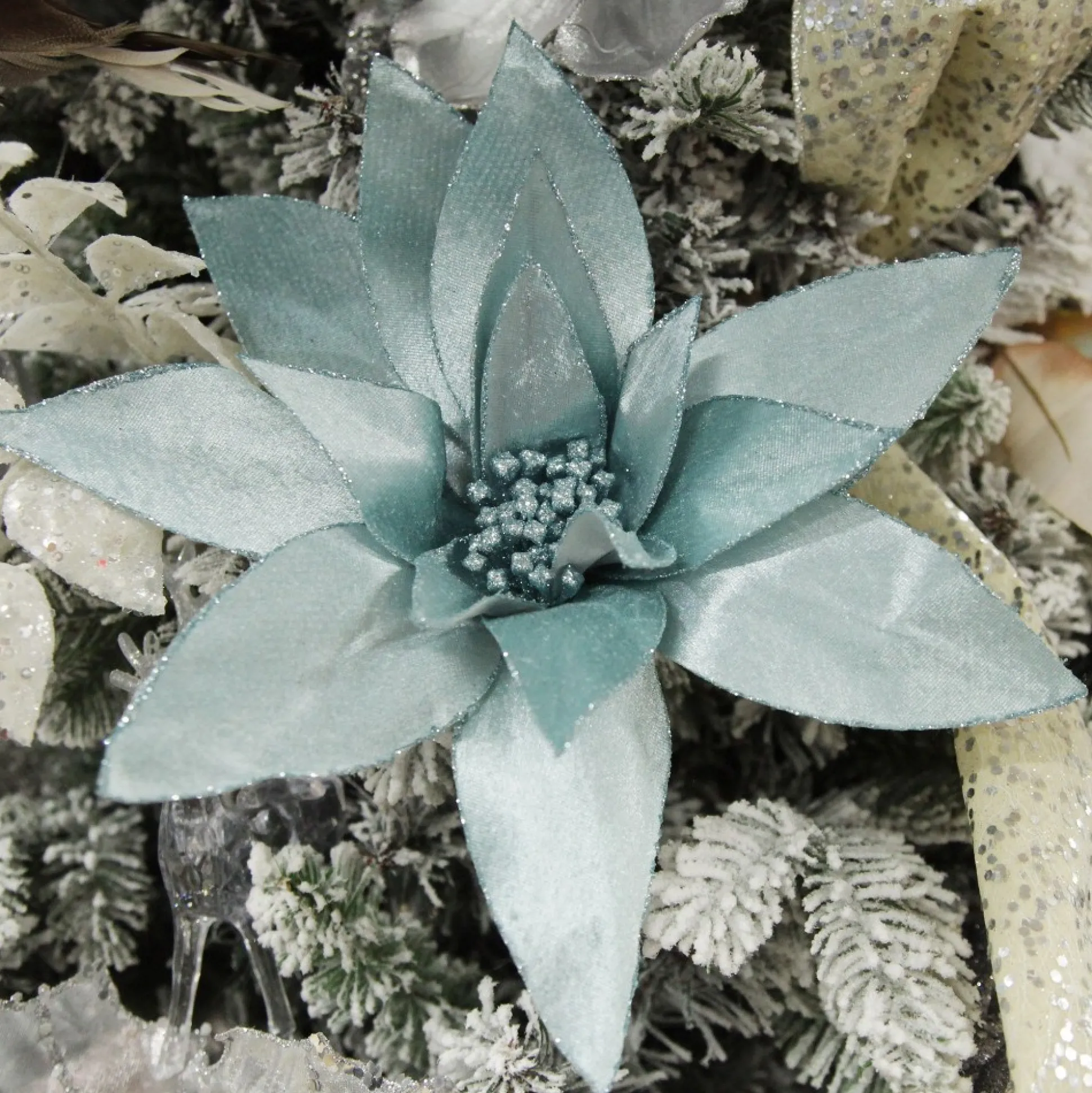 This Unique Seafoam Blue Lily Flower Stem With Glitter Trim Will Create A Delightful Accent In Your Next Floral Arrangement. Crafted From High-Quality Materials, This Faux Lily Features Soothing Seafoam Blue Petals With Gorgeous Glitter Trim. The Flower Also Has Intricate Glittered Pollen Details. The Durable And Flexible Stem Is Suitable For A Range Of Crafting And Decorating Purposes. Cut Down To Your Desired Length Or Keep It As Is And Bend For Easy Placement. Long-Lasting And Durable, Faux Flowers Are Becoming A Popular Choice For Those Who Love To Craft And Decorate Their Home. Use Them To Embellish Your Christmas Tree, Wreaths, And Garlands Or Combine Them With Other Foliage And Florals In A Vase. The Soothing Seafoam Blue Makes This Flower The Perfect Fit For A Coastal Christmas Decor Theme Combined With White, Blue, And Silver Decor, Exposed Wooden Elements And Hints Of Glass And Glitter.