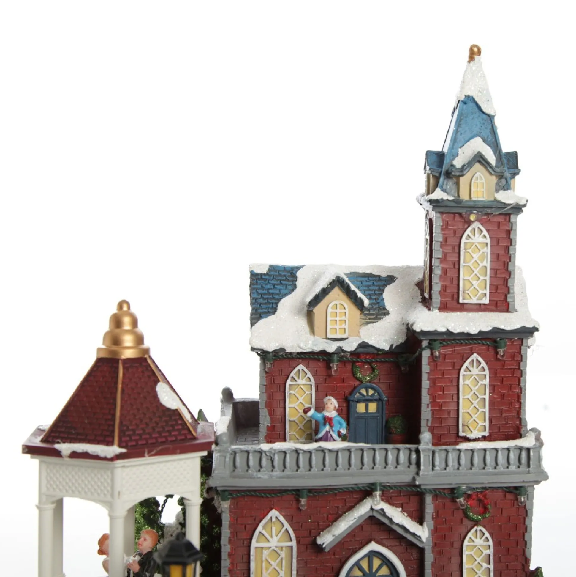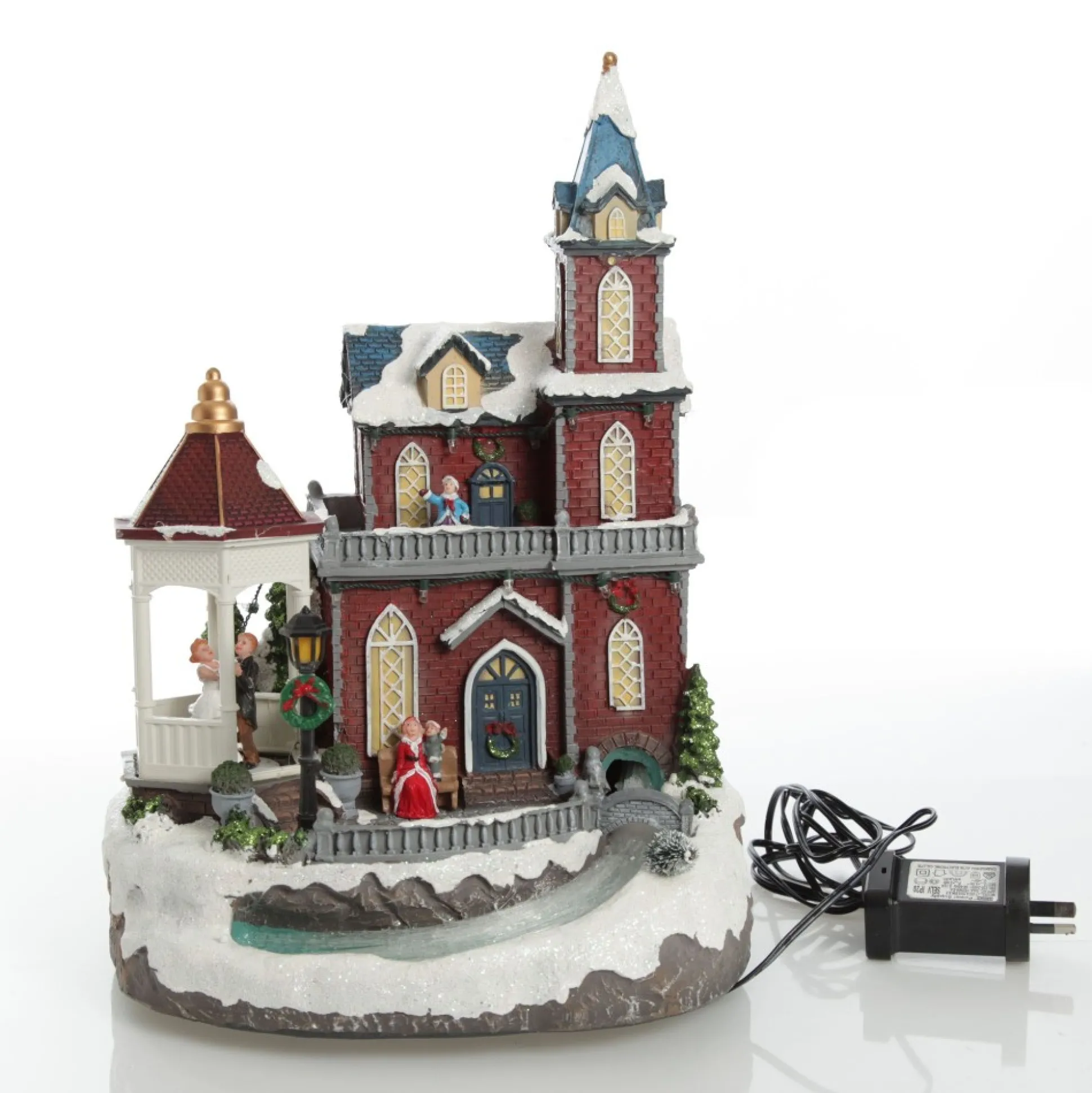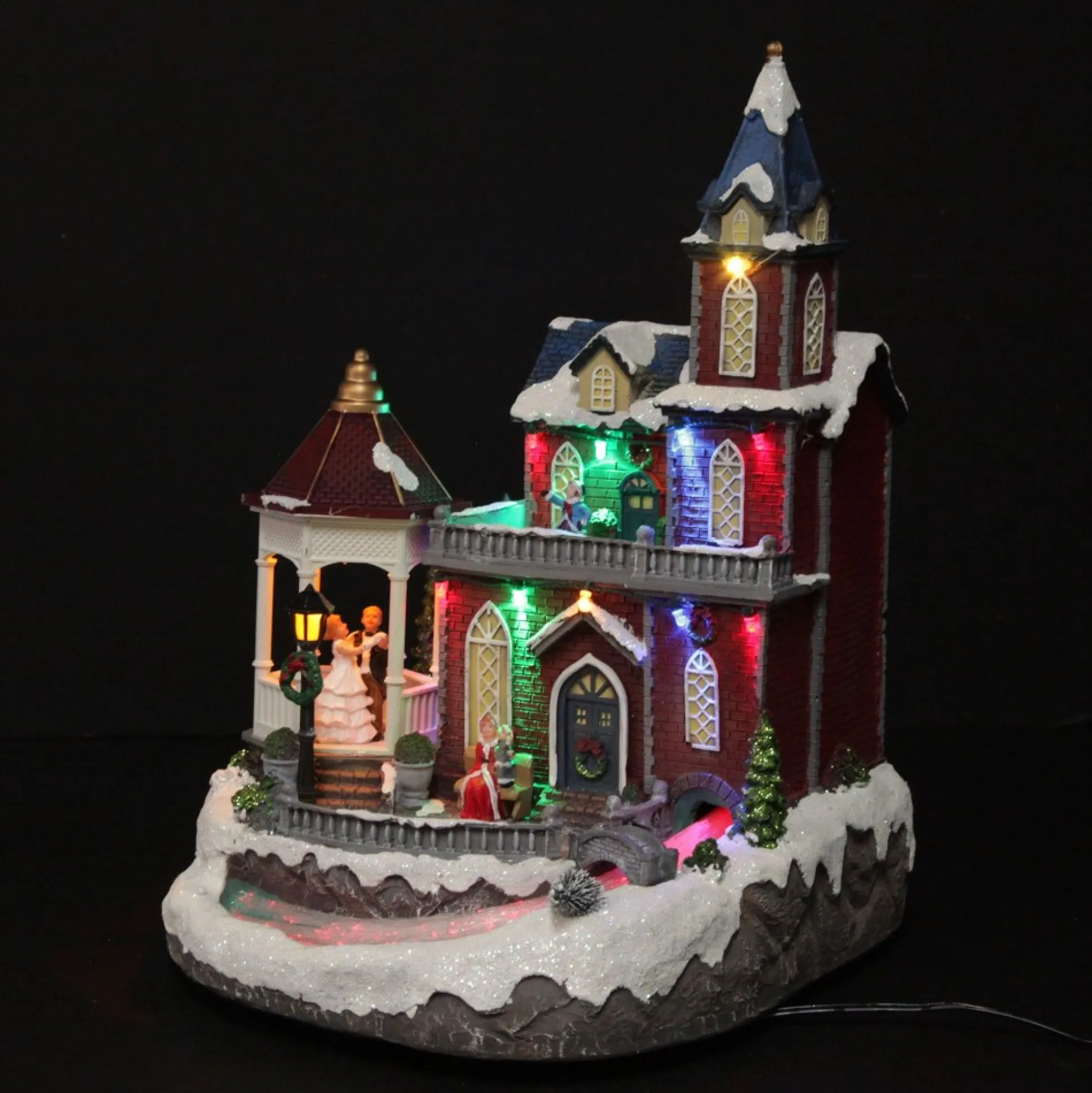 Bring Quaint Christmas Charm To Your Festive Displays With Our Lightup Musical Large Red Winter House Christmas Ornament. Crafted From Durable Polyresin, This Ornament Features A Unique Red Christmas House With A Quaint Gazebo On The Side. When Switched On The Ornament Is Illuminated With A Variety Of Coloured Lights, A Dancing Couple Spins Under The Gazebo And A Cheerful Rendition Of Jingle Bells Plays.