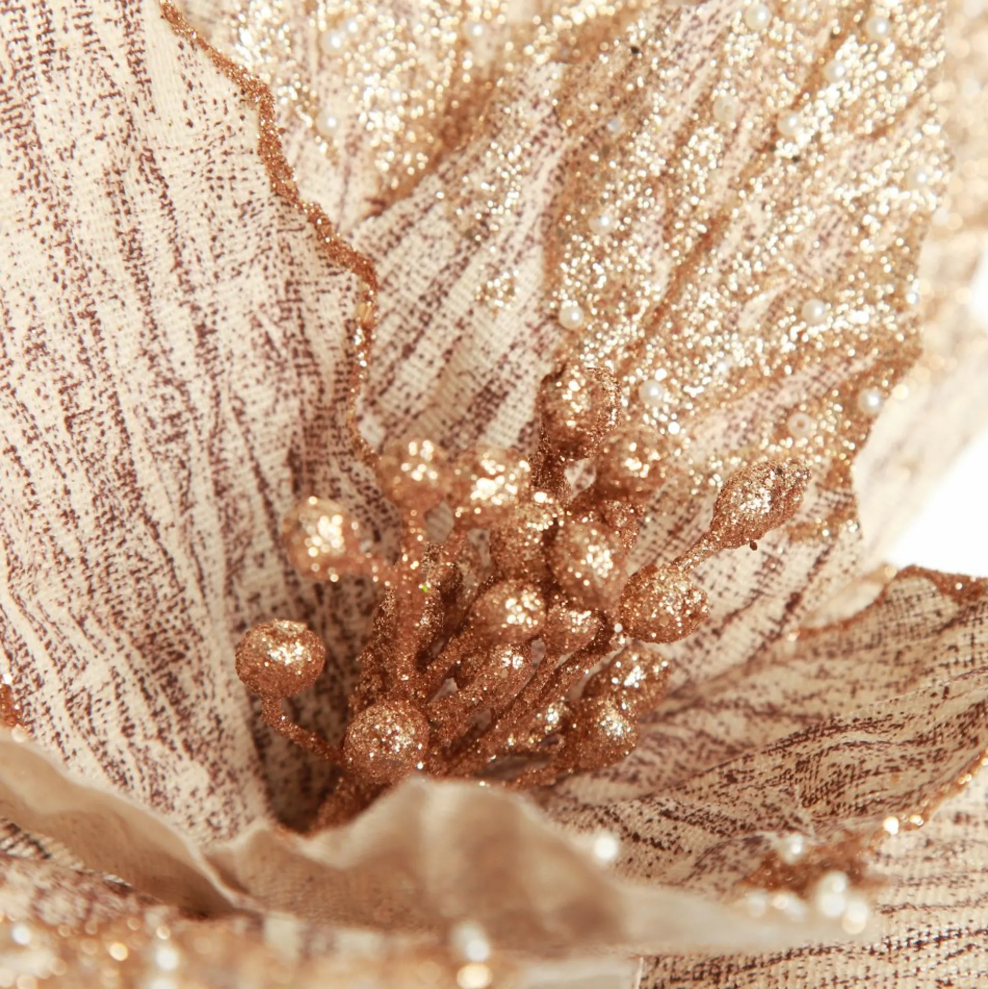 All I Want For Christmas Is This Natural Poinsettia Flower Clip With Glitter Tips, Elegantly Inspired By Rustic Farmhouse Decor. With Its Natural And Neutral Tones, This Decoration Is Crafted From A Combination Of High-Quality Cotton, Linen And Calico To Be Both Flexible And Durable. The Brownish Hues Give It That Subtle Rustic And Warm Charm We Are Craving For Our Homes And The Glitter Finish Adds A Touch Of Sparkle And Glamour.