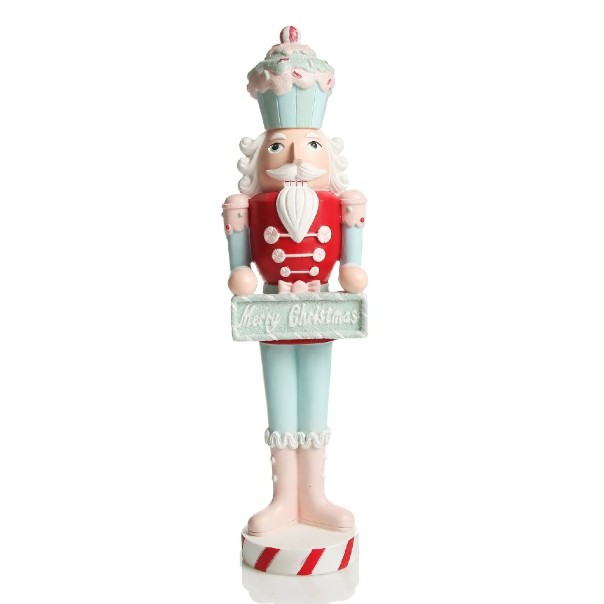 Our Christmas Figurines And Ornaments Seamlessly Blend Playful Exuberance With A Touch Of Elegance. Pair This Ornament With Bright Pastel Colours And Our Fun Candy-Shaped Ornaments For A Home That Captures The Essence Of Fun! Our Pastel Nutcracker Ornament Holding Merry Christmas Sign Is Shipped From Australia, So You Can Be Sure That Your Festive Decorations Will Arrive Safely And Quickly.