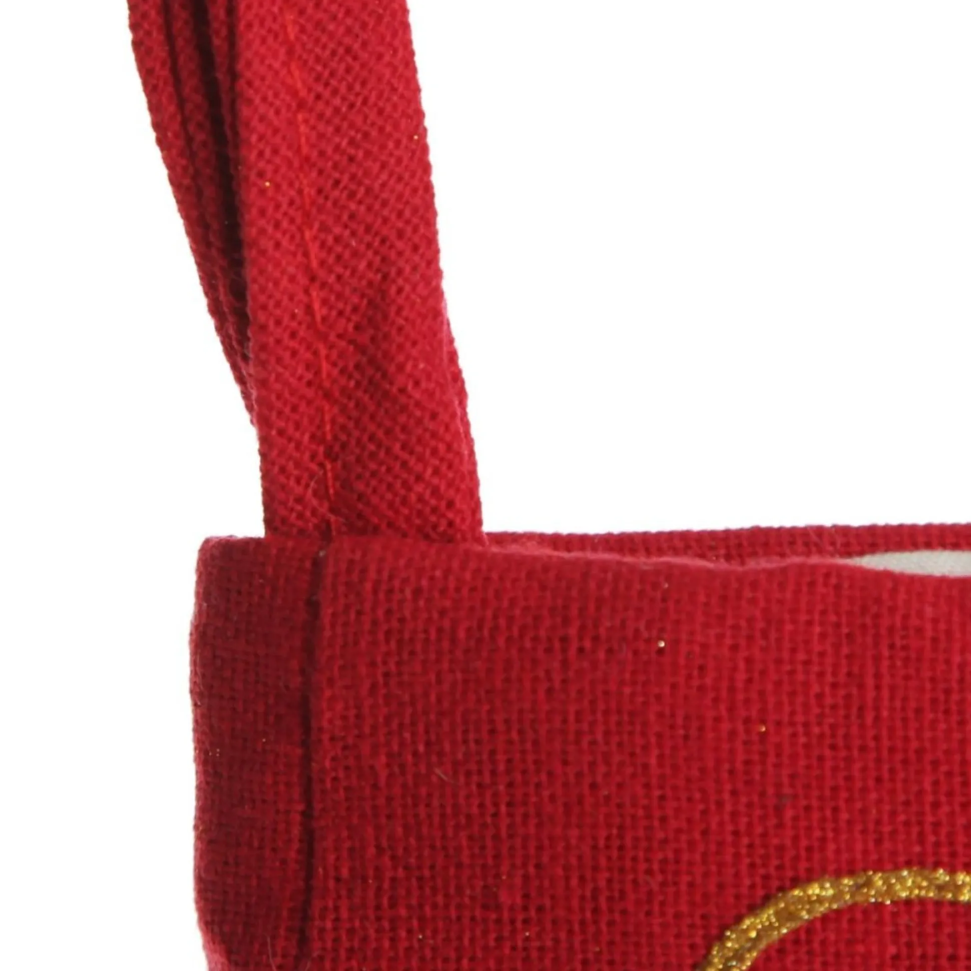 Create Unique And Memorable Keepsakes For Your Family With Our Personalised Burlap And Linen Bauble Stocking With Red Trim.