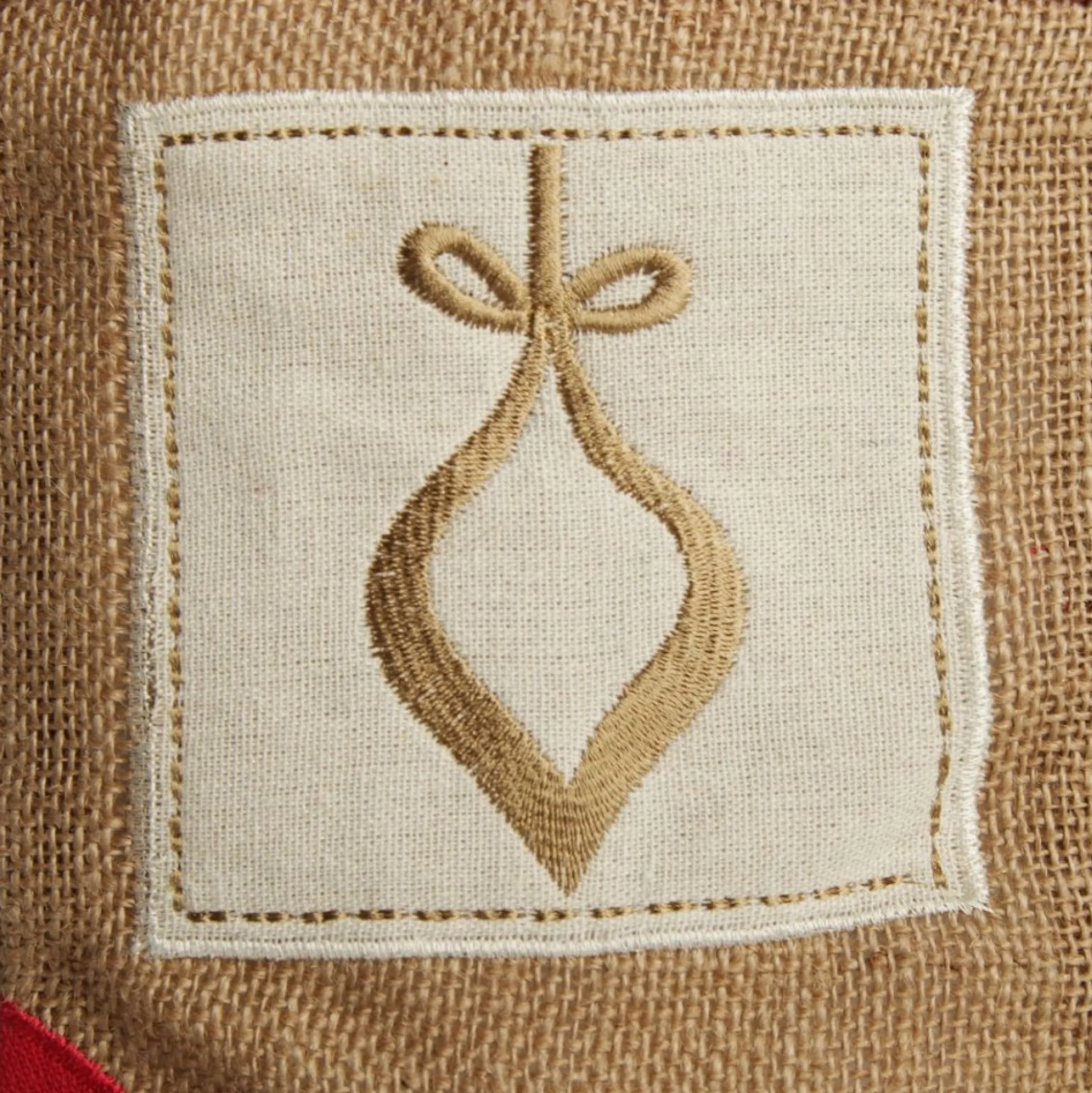 Crafted From Natural Burlap, This Stocking Features An Elegant Embroidered Red Bauble Design And A Soft Red Linen Cuff. The Cuff Can Be Personalised With A Name Of Your Choice. Price Includes Personalisation. Simply Choose A Text Style And Colour And Add The Name Of Your Choice.