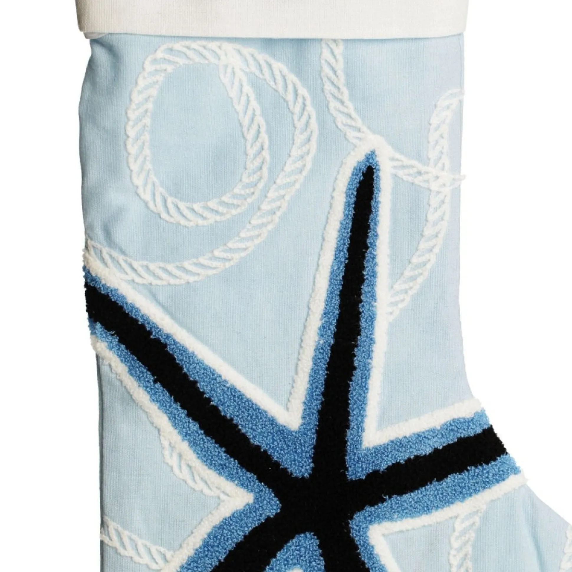 Create A Gorgeous Gift With This Personalised Coastal Starfish Christmas Stocking. This Stocking Is Crafted From Soft Blue Linen, With A White Cuff, And Features A Gorgeous Textured Appliqued Starfish.