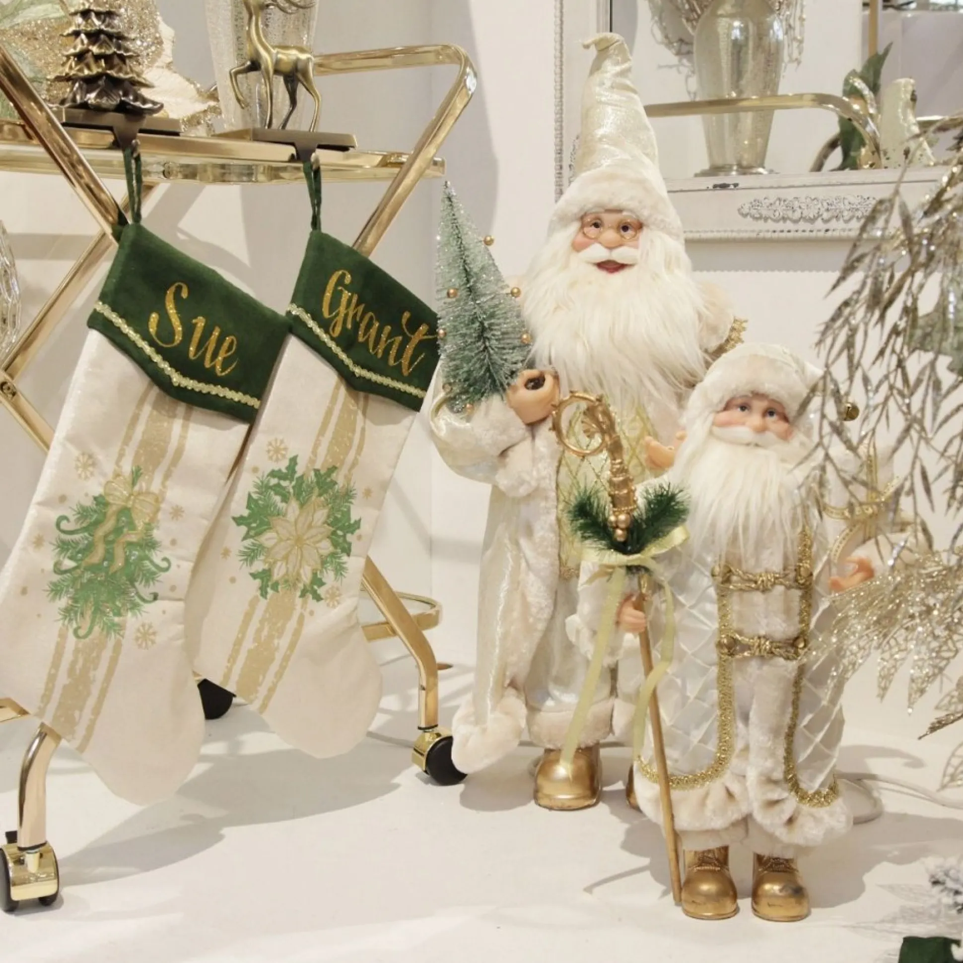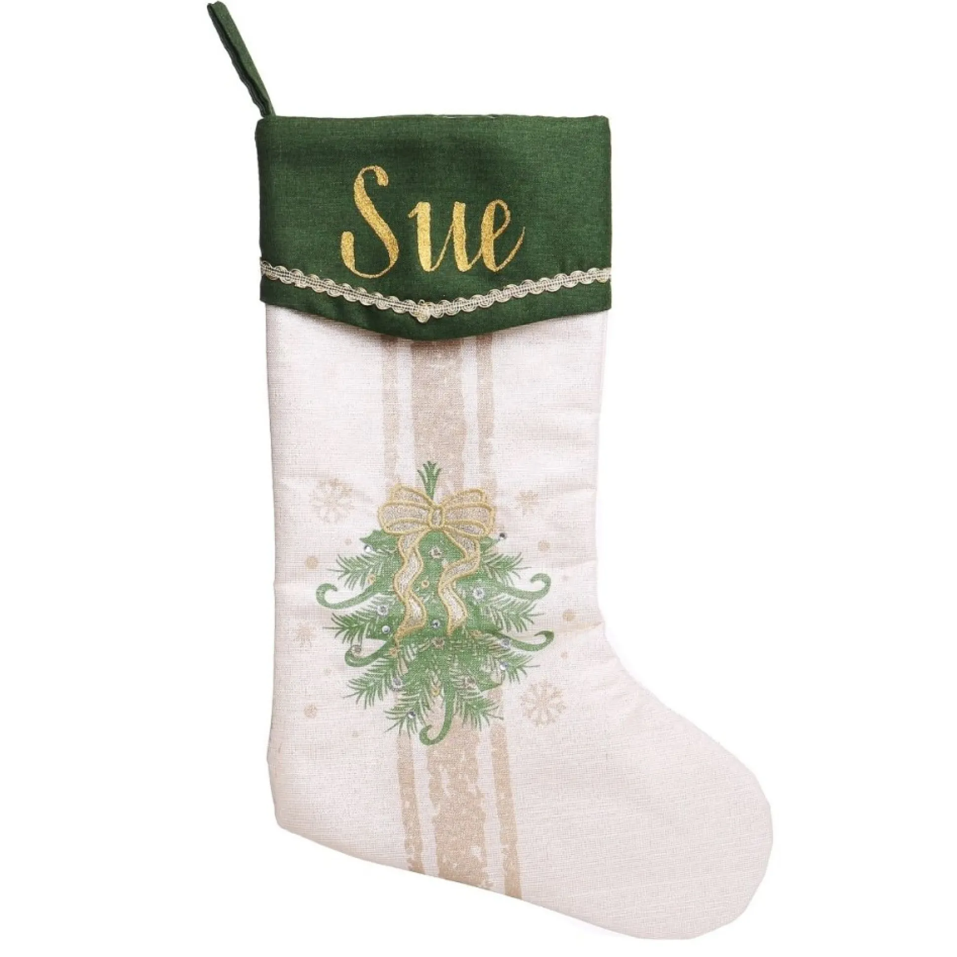 If You Love Creating Beautiful Displays In Your Home During The Christmas Season, You Will Love This Personalised Green And Gold Mistletoe Christmas Stocking. Made From Fresh Cotton With Delicate Gold Glitter Detail On The Cuff, This Stocking Features A Green And Gold Poinsettia Design. Personalised Stockings Are Such A Beautiful Gift For Friends And Family And Can Be Used To Add Something Unique And Personal To Your Own Christmas Display. This Stocking Can Be Used To Fit A Traditional Theme Paired With Green, Gold, And Neutral Tones With Touches Of Foliage And Exposed Wood. Pair With Our Poinsettia Stocking, And Christmas Tree Skirt In The Same Design. Turn Your Home Into A Beautiful Christmas Display Or Gift Loved Ones With This Memorable And Personalised Christmas Keepsake.