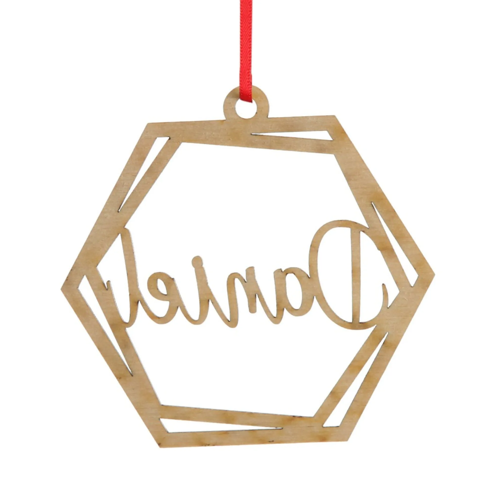 Add Interest And A Personal Touch To Your Christmas Tree With This Personalised Hexagonal Laser Cut Christmas Decoration. Detailed Laser Cut Geometric Design In Your Choice Of Plywood, Glitter Aryclic Or Mirror Finish Acrylic. Personalised With A Cut Out Name And Finished With A Red Ribbon For Hanging, These Christmas Decorations Make A Sweet And Personal Gift, Or Can Even Be Used As A Gift Tag On A Wrapped Present. Shown Here As Plywood