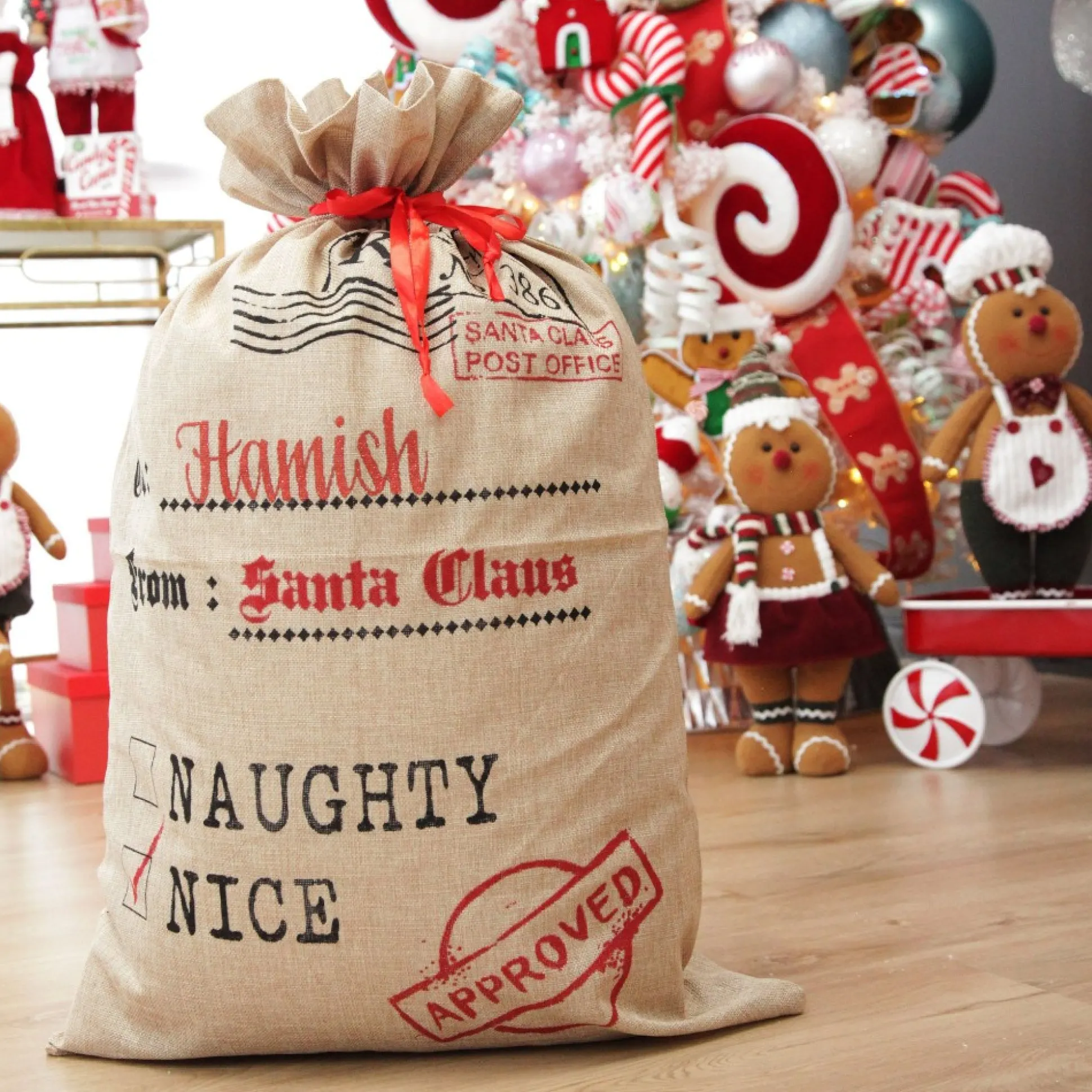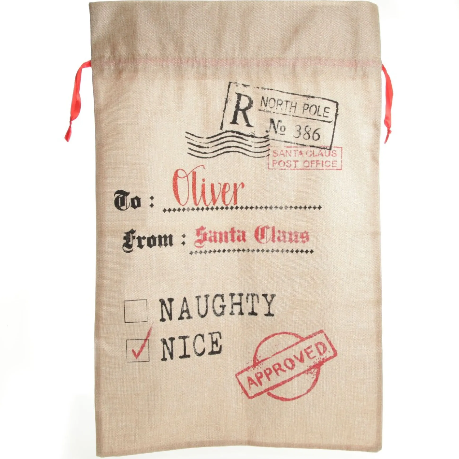 Create A Personalised Keepsake With Our Personalised Jute Naughty Or Nice Santa Sack. Crafted From A Durable Jute Burlap Material With A Red Ribbon Drawstring, This Santa Sack Features A Unique Printed Design Can Be Personalised With The Name.