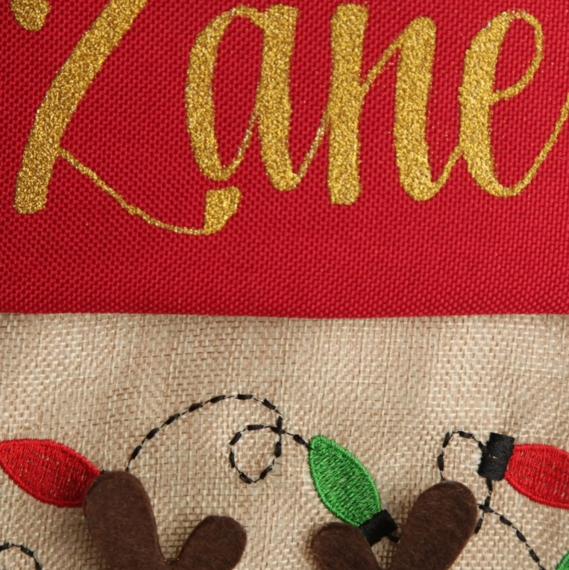 Create A Sweet And Joyful Display With This Delightful Personalised Reindeer Christmas Stocking With Dangly Legs. Crafted From A Combination Of Textured Materials And Embellished With A Sewn Red And Green Christmas Lights Design, This Stocking Features A 3D Felt Reindeer With Dangly Legs. Popular For Children Of All Ages, Or Even As Part Of A Set For The Whole Family Using Our Other Dangly Leg Designs: Santa, Boy Elf, Girl Elf, Gingerbread Girl And Gingerbread Boy. Dress Up Your Mantel With A Stocking For Each Member Of The Family And Display Them All Throughout The Christmas Season. Personalised Stockings Add Something Unique And Memorable To Your Home And Also Make Excellent Gifts For Friends And Family! This Stocking Is Perfect For A Bright Or Traditional Christmas Theme With Red, Green, Gold, And Silver Tones. Spread Joy This Christmas With This Gorgeous Personalised Stocking.