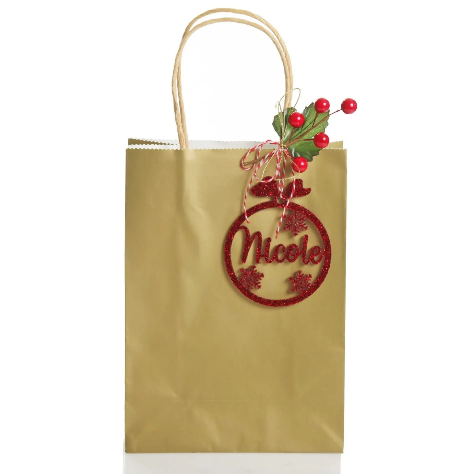 Add A Fun And Festive Element To Your Christmas Tree With This Personalised Snowflake Laser Cut Christmas Decoration. Laser Cut Design Made From Your Choice Of Plywood, Glitter Arcylic Or Mirror Acrylic In A Range Of Colours. This Bauble Shaped Decoration With Bow Is A Beautiful Design That Incorporates The Name Of Your Choice Amongst Snowflakes. Finished With A Red Ribbon For Hanging, These Christmas Decorations Make A Sweet And Personal Gift, Or Can Even Be Used As A Gift Tag On A Wrapped Present. Shown Here In Red Glitter Acrylic.