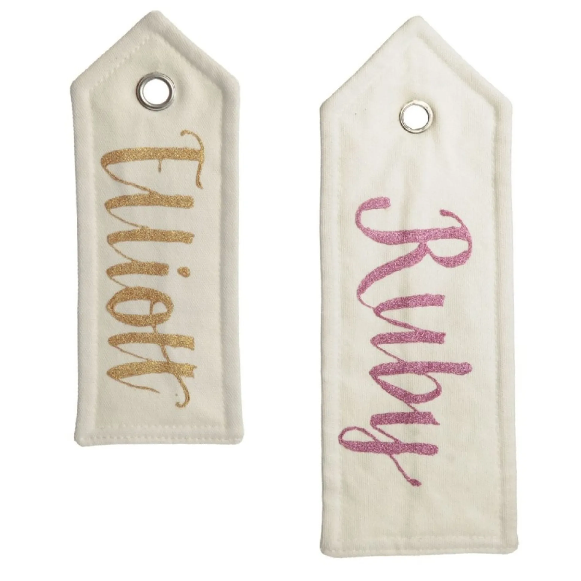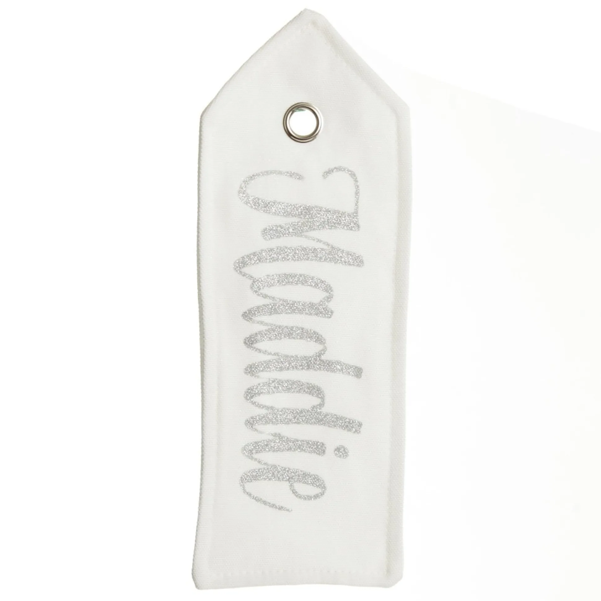 Crafted From Crisp White Linen With A Silver Metal Loop, This Tag Features Gorgeous Personalisation By Our Talented Artists With The Name Of Your Choice.