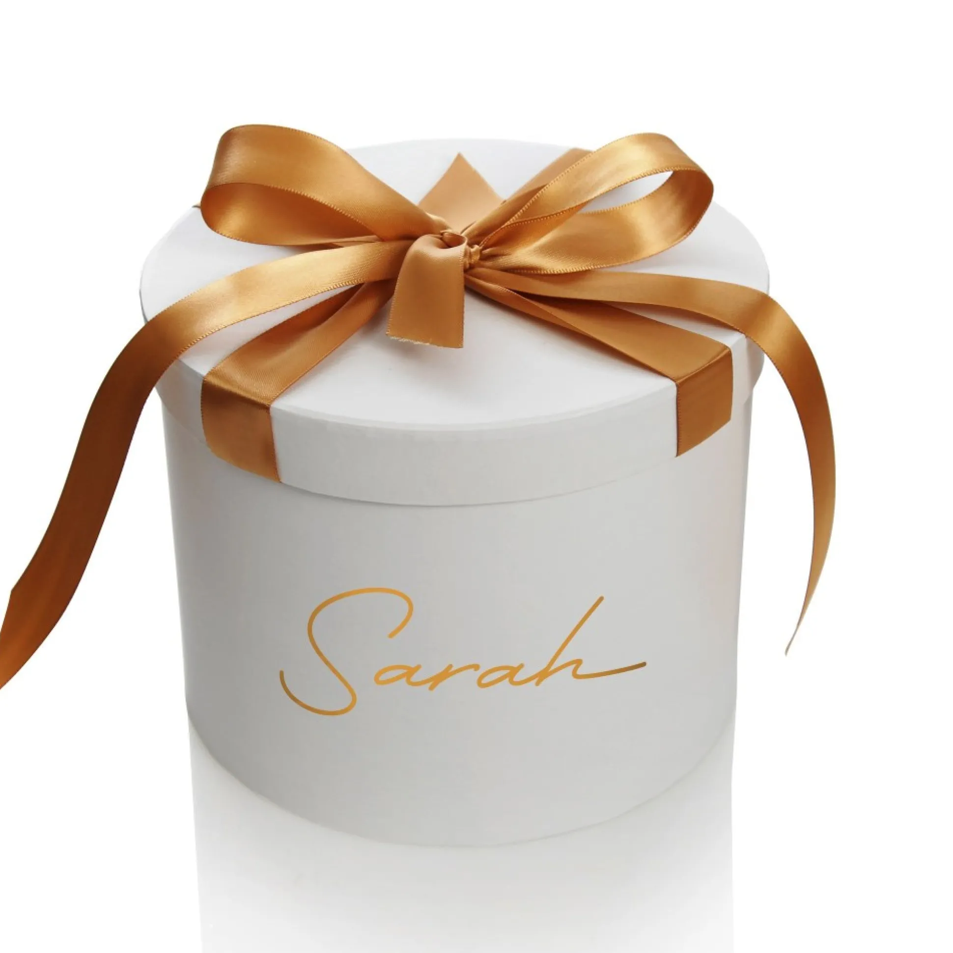Show Your Love And Appreciation For That Special Someone By Delicately Placing Mementos In This Personalised White Round Gift Box With Gold Ribbon Bow. Perfectly Encase A Treasured Keepsake Gift In Unsurpassed Elegance And Surprise Your Loved Ones.