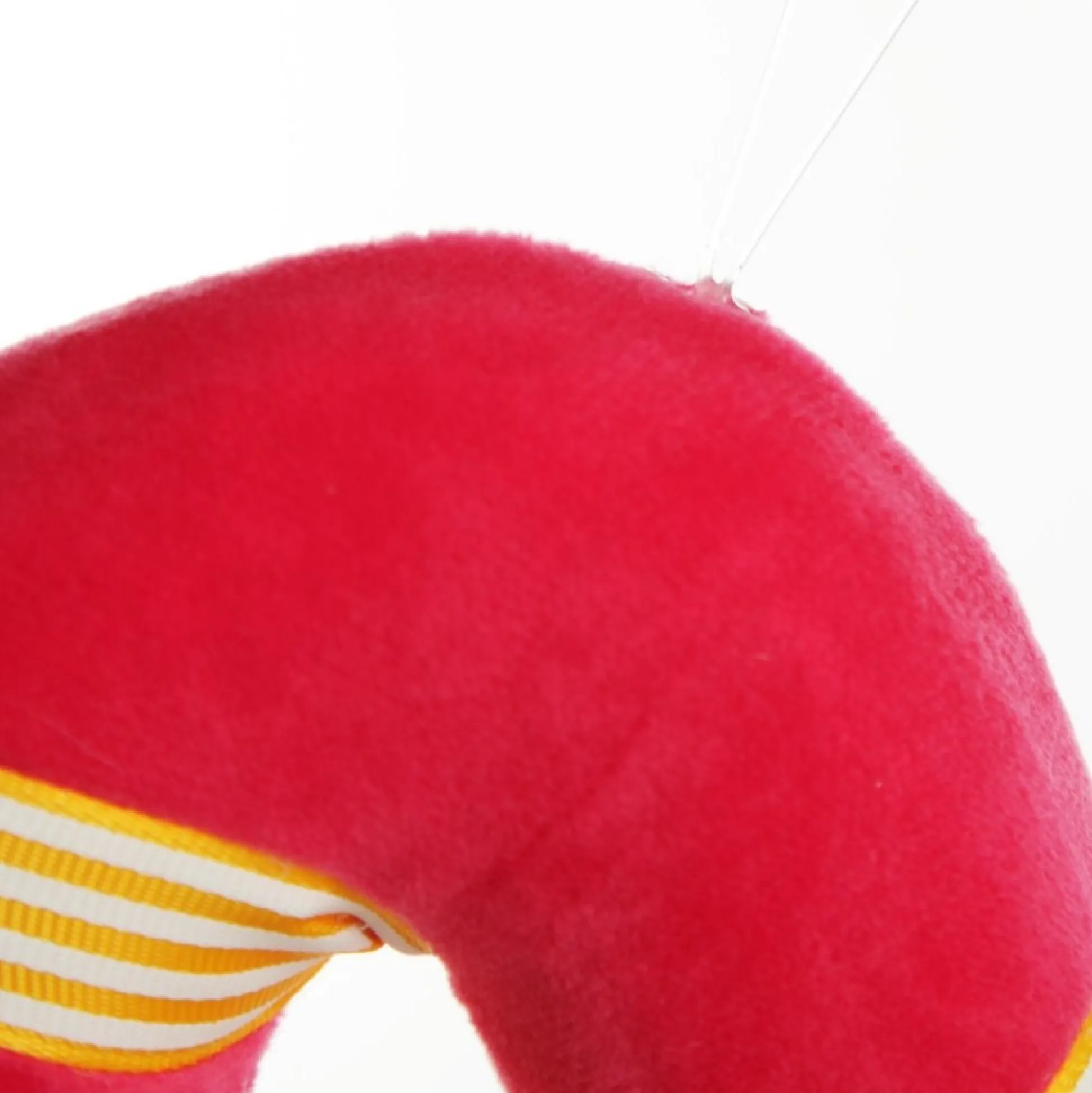 Crafted From A Lightweight Base Material And Covered In Vibrant Pink Velvet-Like Fabric, This Candy Cane Features White And Yellow Striped Ribbon Wrapped Around And An Embellished Bow On The Front. The Decoration Comes With A String Attached On Top, Ready To Hang On Your Tree.
