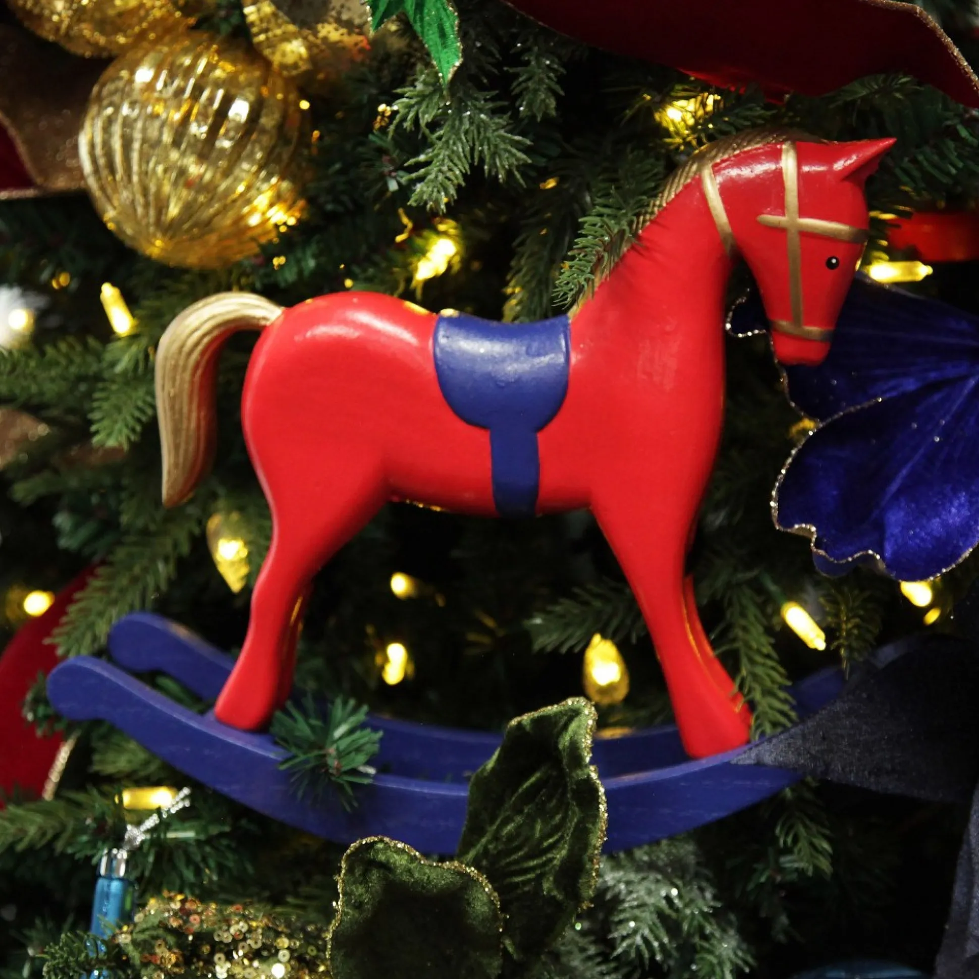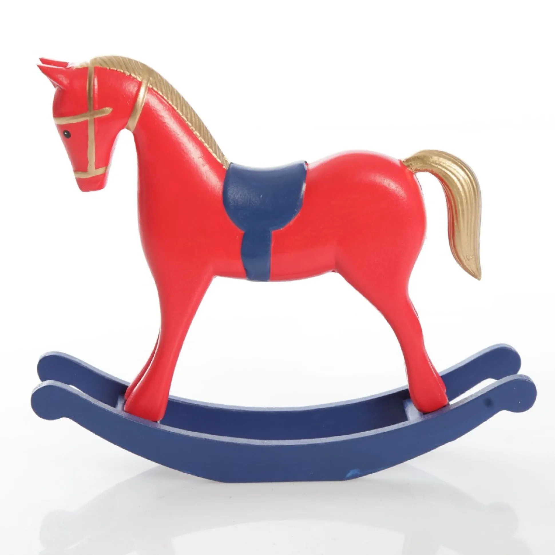Add Traditional Christmas Charm To Your Home With Our Red And Blue Rocking Horse Christmas Ornament. Crafted From Durable And Lightweight Wood With A Smooth Painted Finish, This Rocking Horse Features A Vibrant Red Body, Blue Saddle, And Delightful Gold Mane And Tail Details.