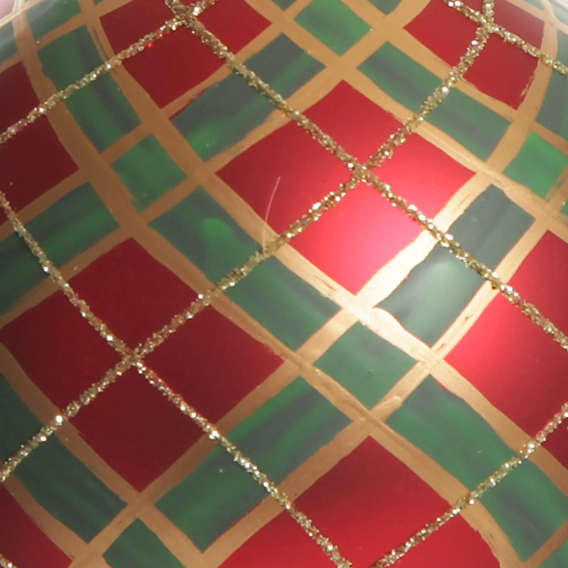 Red and Green Painted Holly and Tartan Christmas Baubles – Set of 2 Christmas Bauble Sets|