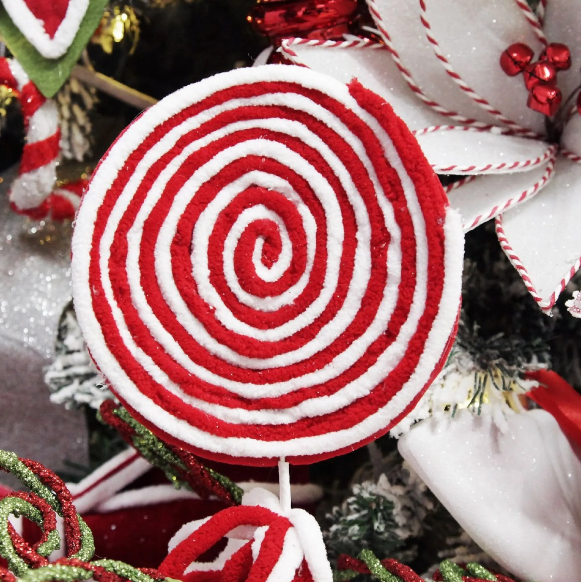 Create A Whimsical And Exciting Display For The Festive Season With This Red And White Felt Lollipop Christmas Pick. Crafted From Lightweight Materials And A Durable And Flexible Stem, This Lollipop Pick Features A Red And White Swirl Design Made From Soft Felt Material And Felt Bow Details On The Stem. Use This Pick To Adorn Your Christmas Tree, Garlands, Wreaths, Floral Arrangements And More. It Could Even Be Used As Part Of An Extravagant Tree Topper!