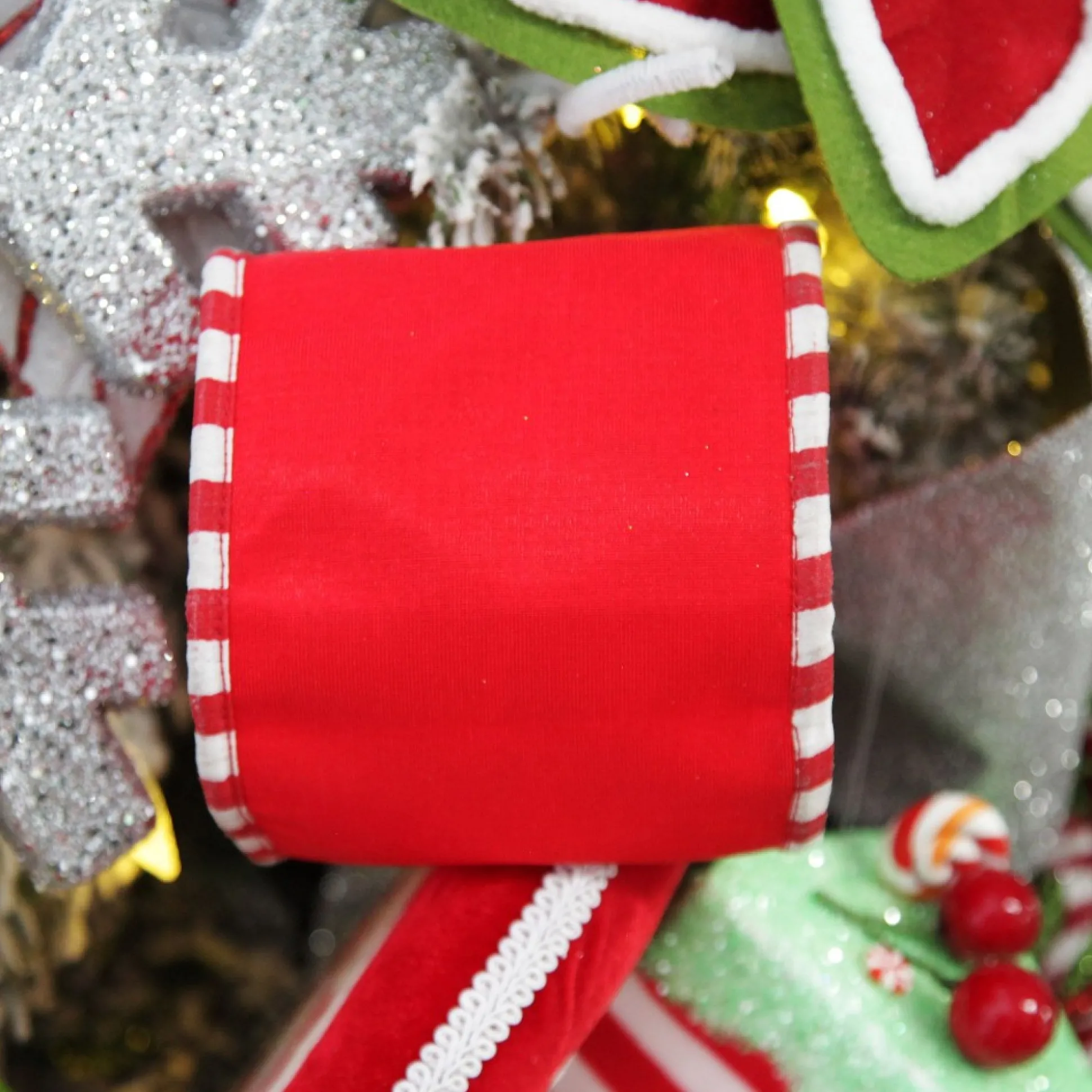 This Red Christmas Ribbon Garland With Piped Striped Edge Is A Christmas Enthusiasts Dream! Crafted From Durable Red Material With A Delightful Piped Red And White Stripe Edge.