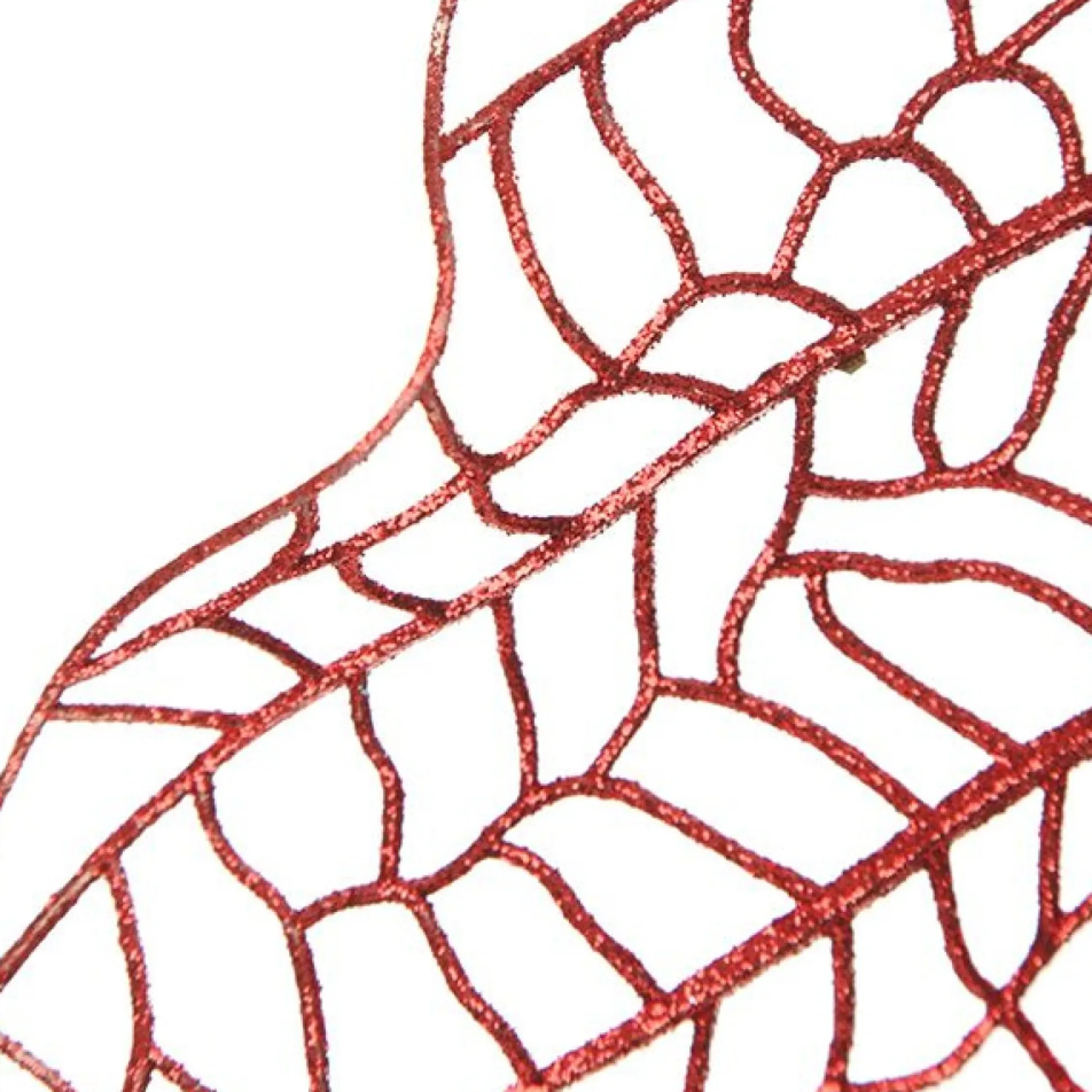Sparkling Red Mesh Palm Leaf Pick With Glitter Finish Ideal For Christmas Arrangements, Tree Toppers Or To Embellish Your Christmas Tree.