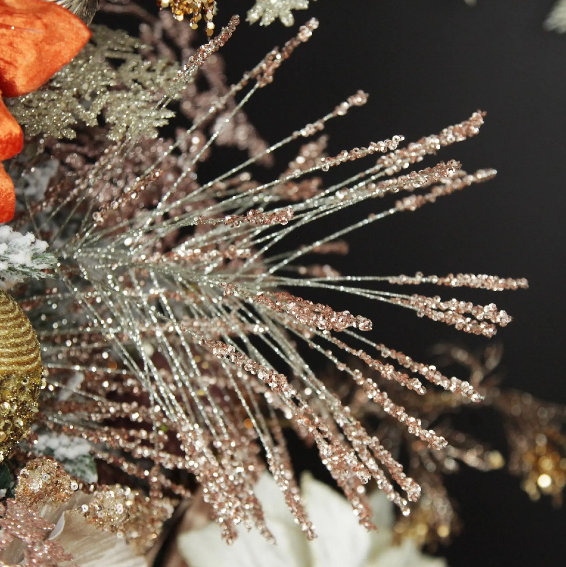 Add A Delightful Sparkling Accent To Your Floral Displays With This Rose Gold Glitter Grass Spray. Crafted With A Durable And Flexible Stem For Easy Placement, This Spray Features Collections Of Grass-Like Sprays With Delightful Rose Gold Glitter Details. This Spray Would Make A Unique Addition Of Texture And Sparkle To Your Next Floral Arrangement Or Christmas Tree Display. Sprays Are An Inexpensive And Versatile Option To Use For A Variety Of Crafting And Decorating Endeavours. Use To Embellish Your Christmas Tree, Decorate Your Own Garlands And Wreaths, Or Combine With Other Sprays And Foliage To Create Your Own Floral Arrangement In A Vase! You Could Even Use It To Create An Extravagant Tree Topper. Use The Sprays As A Whole Or Cut Them Down As Needed. The Luxe Rose Gold-Tone Is Perfect For A Feminine And Pastel Sugar Plum Or Boho Glam Christmas Decor Theme Combining Neutral Tones, Pinks And Rose Gold With Glitter And Glass To Create A Unique, Luxurious Display. Create Delightful Displays To Impress Your Guests And Celebrate The Most Wonderful Time Of The Year.