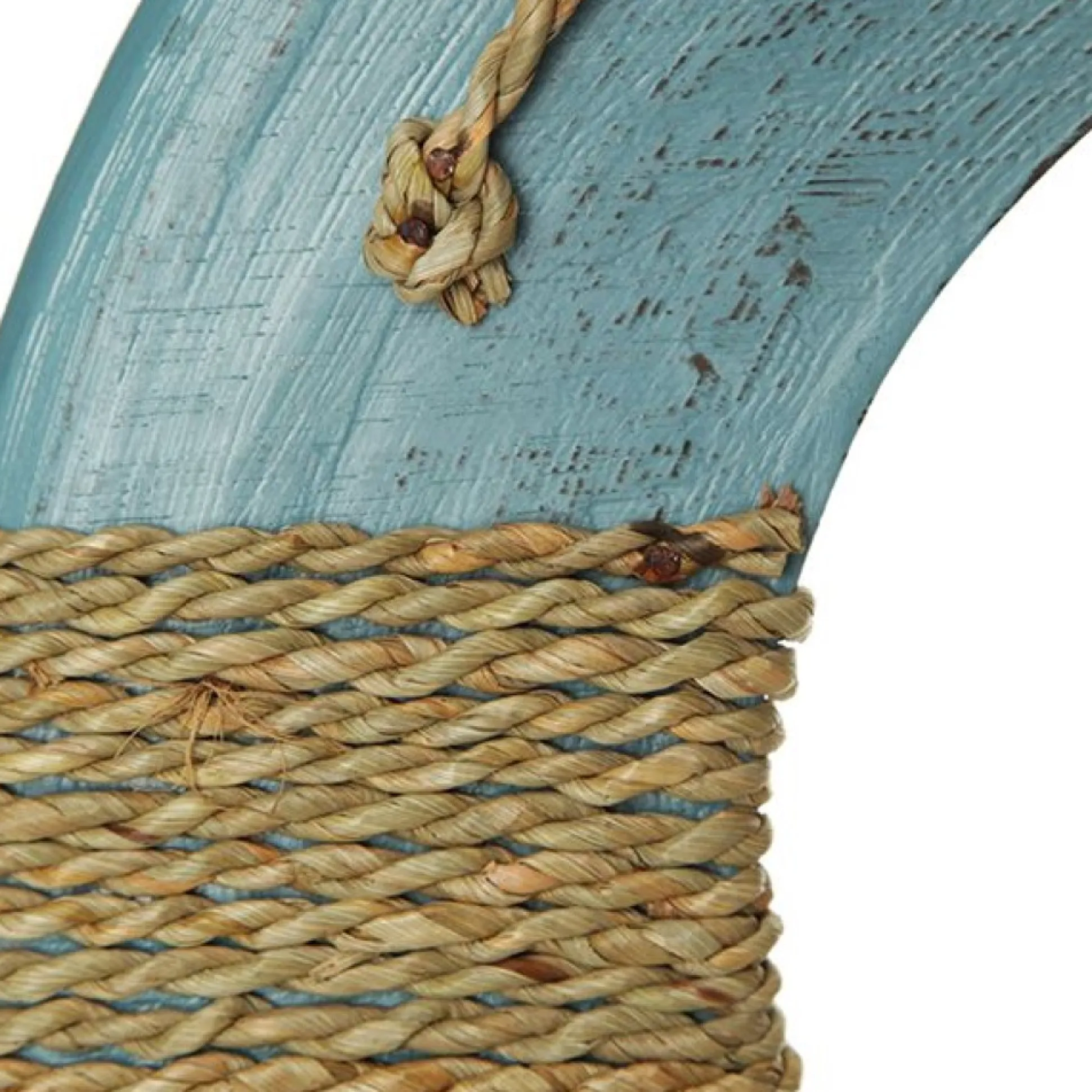 A Beautiful Hand Carved, Timber Life Buoy Beach Wreath. Featuring Fresh Coastal Tones Of Aqua Blue And White, It Is Bound To Look Perfect Hung On Your Front Door Or Incorporated In Your Christmas Decor. Can You Displayed All Year Round. Size 38Cm Diameter.