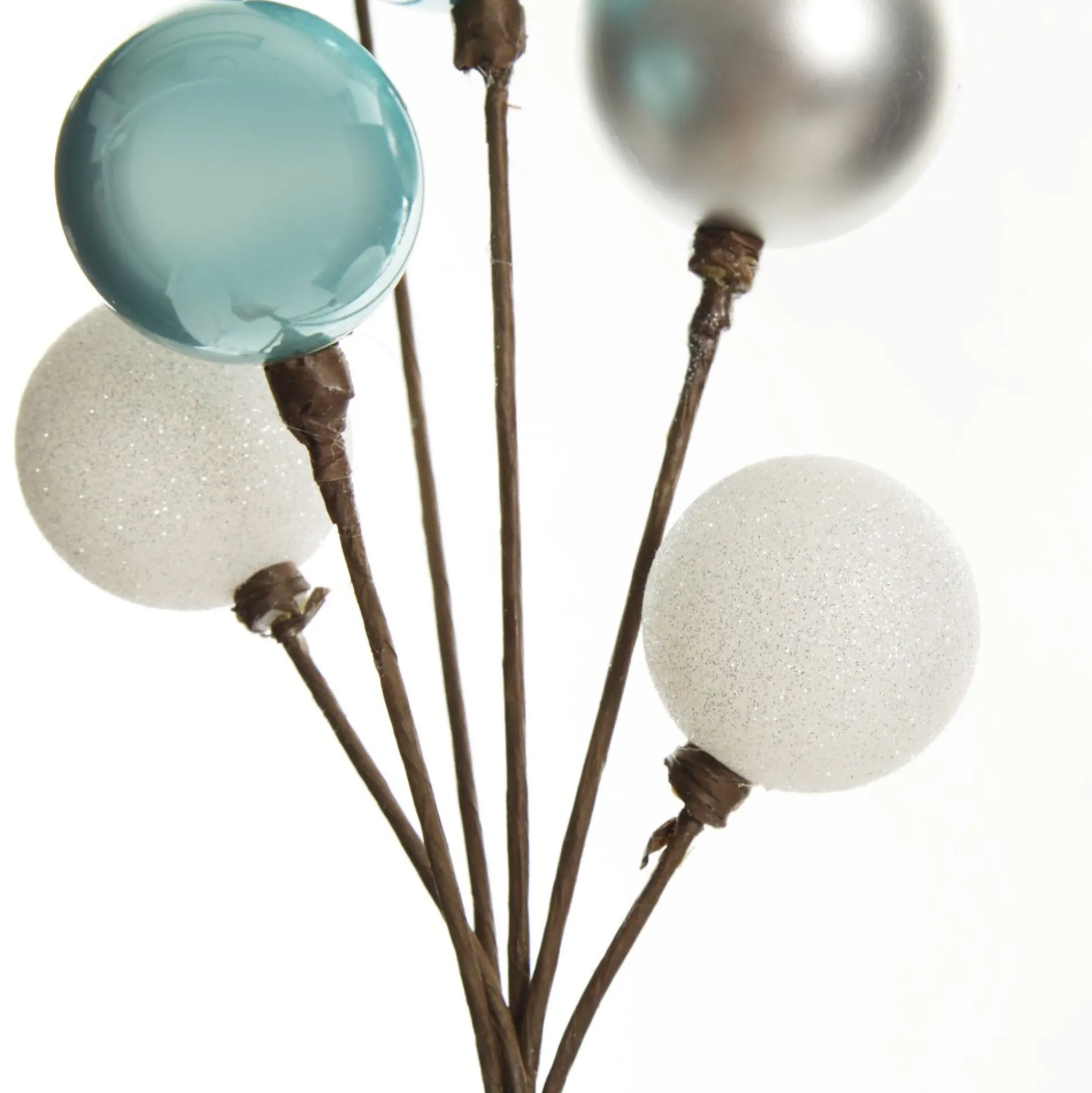 Create Exciting Festive Displays With This Silver And Blue Christmas Bauble Cluster Pick. Featuring A Collection Of Blue, White, And Silver Baubles In Assorted Gloss, Glitter, And Matte Finishes. Each Bauble Attaches To A Flexible And Durable Stem For Easy Placement When Decorating.
