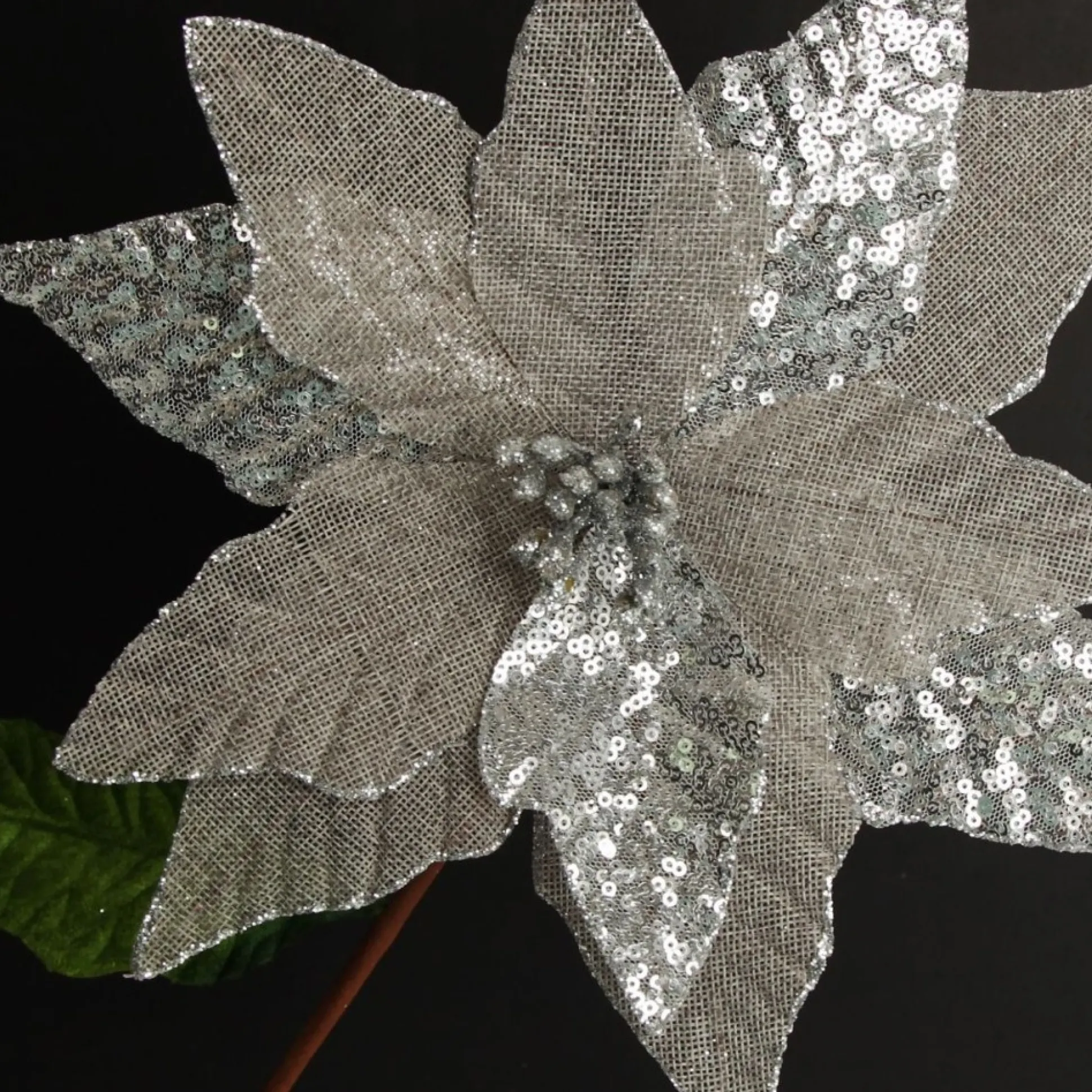 Add Sparkle To Your Home With This Stunning Silver Burlap Sequin Flower. Crafted From High Quality And Durable Materials, This Flower Features Petals Made From A Combination Of Grey Burlap And Sheer Silver Sequin Material. The Flower Has A Flexible Stem, Ideal For Bending And Arranging For Whatever Purpose You Need. This Versatile Flower Can Be Used For Any Craft Or Decorating Project You Have! Use To Add Sparkle And Texture To Your Christmas Tree Or Create Your Very Own Floral Arrangement, Wreath, Or Tree Topper. Be Creative And Use It To Make Unique Christmas Decor. This Flower Would Be Perfect For A White Christmas Theme Paired With White And Silver Tones And Sparkles Galore. Get Crafty And Create Stunning Displays With This Striking Burlap And Sequin Flower.