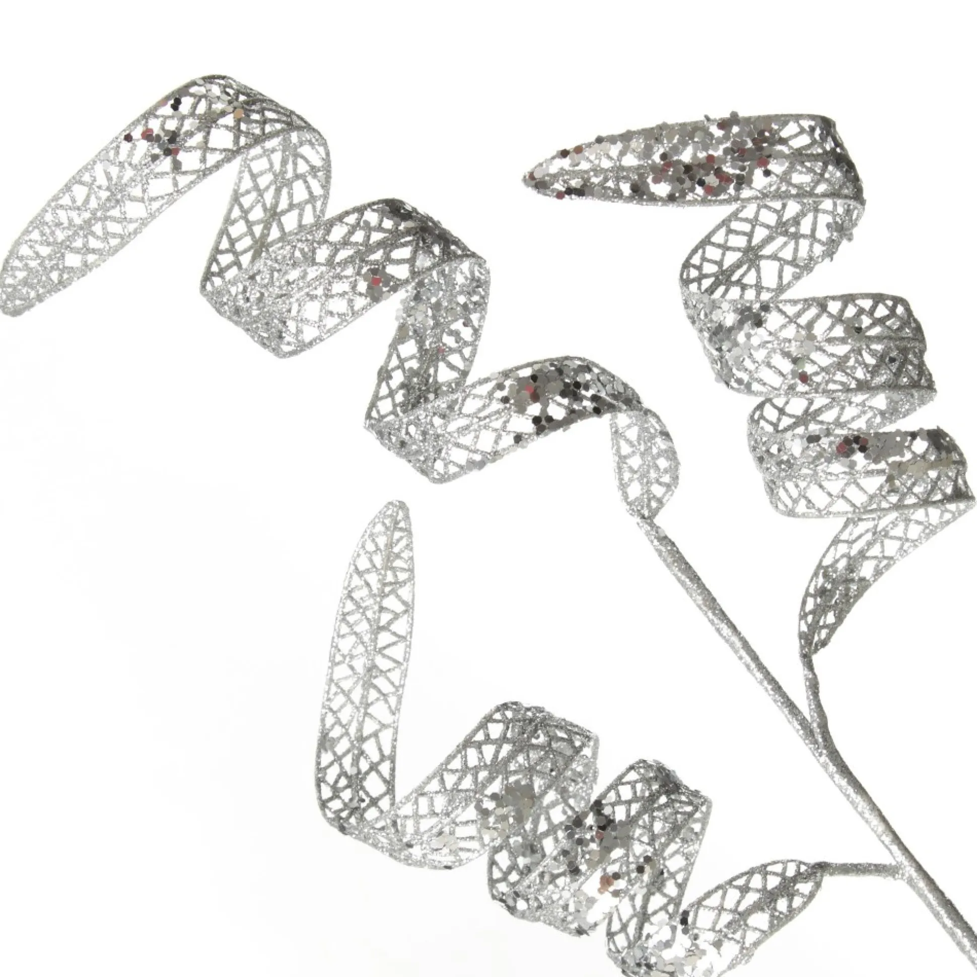 Add Something Unique To Your Christmas Displays With This Silver Glitter Swirl Christmas Pick. Featuring A Collection Of Mesh Patterns Swirls In Stunning Silver Glitter With Large Glitter Chunks For Extra Sparkle. The Flexible And Durable Stem Makes It Easy To Place And Arrange When Decorating.