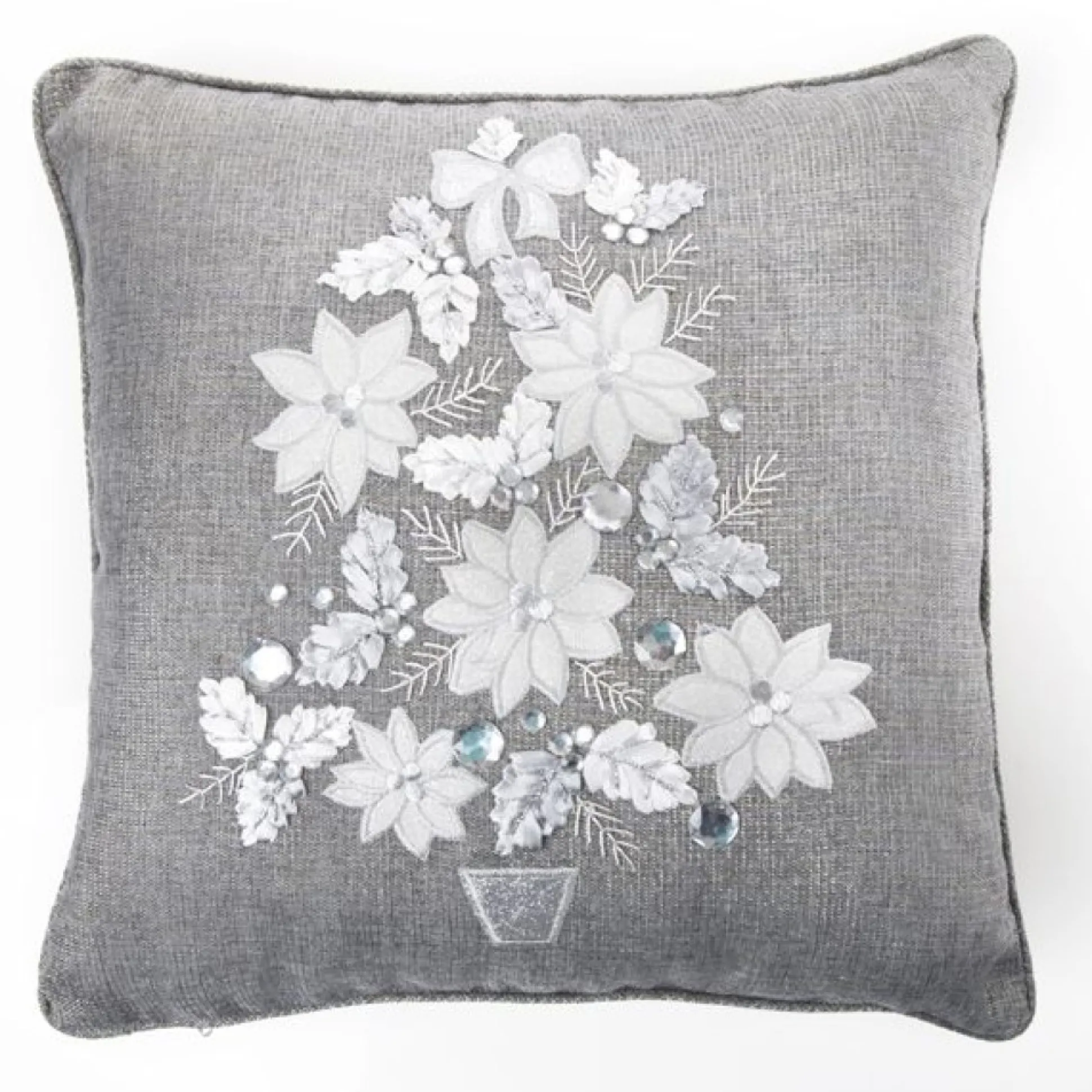 A Contemporary Silver Christmas Cushion Cover Detailed Embroidered Christmas Tree. Bring A Little Bit Of Christmas To Your Bedroom Or Lounge Room. Size 40Cm. Doesn’T Include Filling.