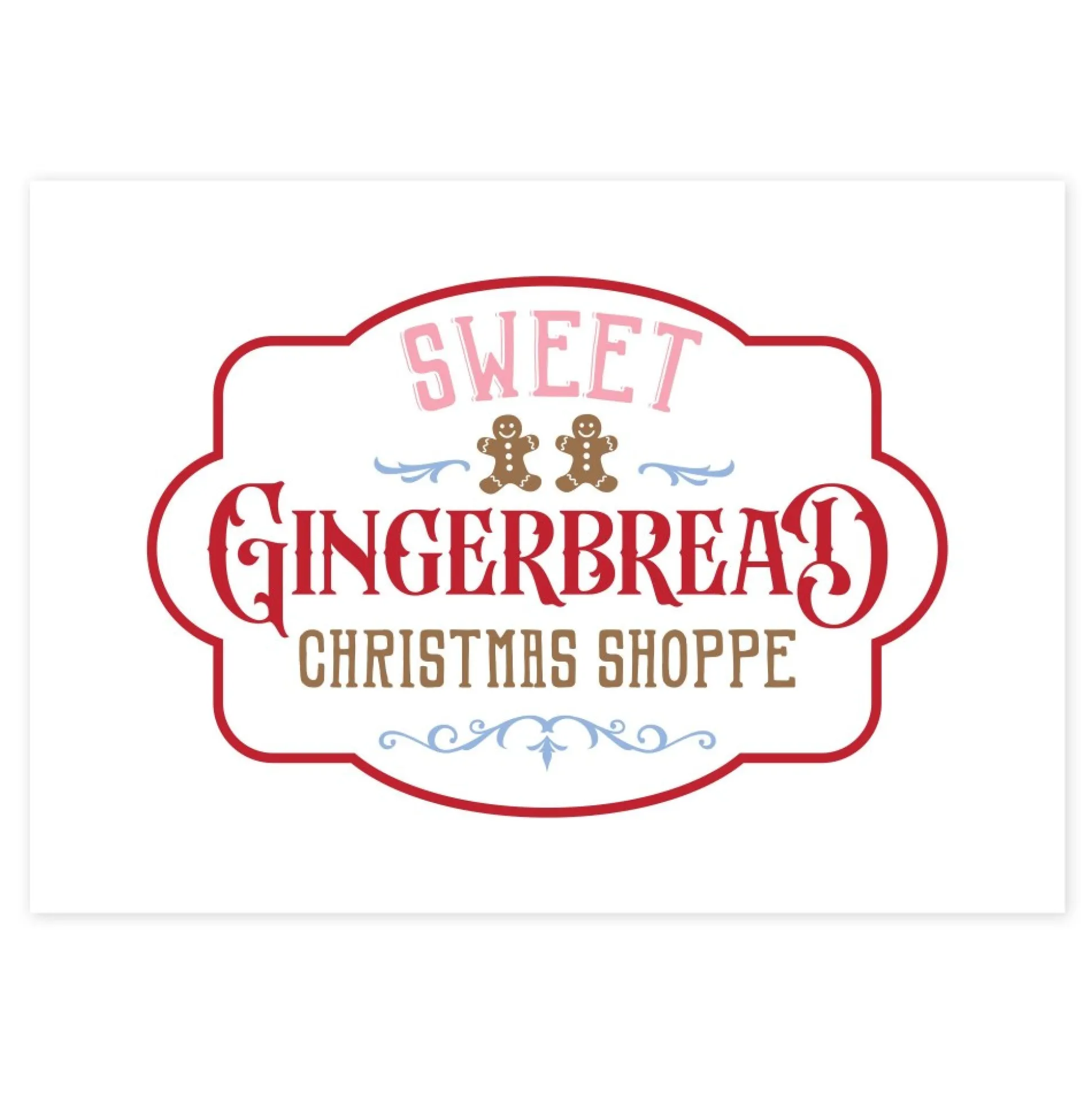 This Poster Features A Pink, Red And White Palette With A Vintage Inspired Gingerbread Shoppe Sign Design. The Poster Is Available In 2 Sizes To Suit Your Preference.