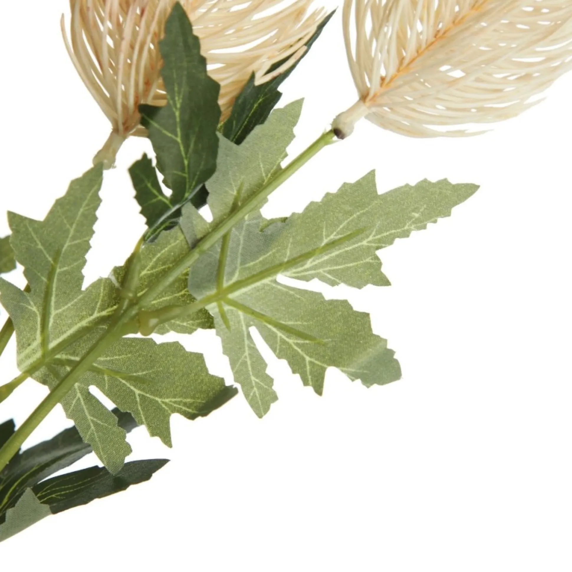 Bring Delightful Australia Flora Into Your Home With This Triple Head Cream Banksia Spray. Made From A Flexible, Lightweight Material, This Spray Features Three Beautiful Cream Banksia Heads With An Array Of Detailed Green Foliage.