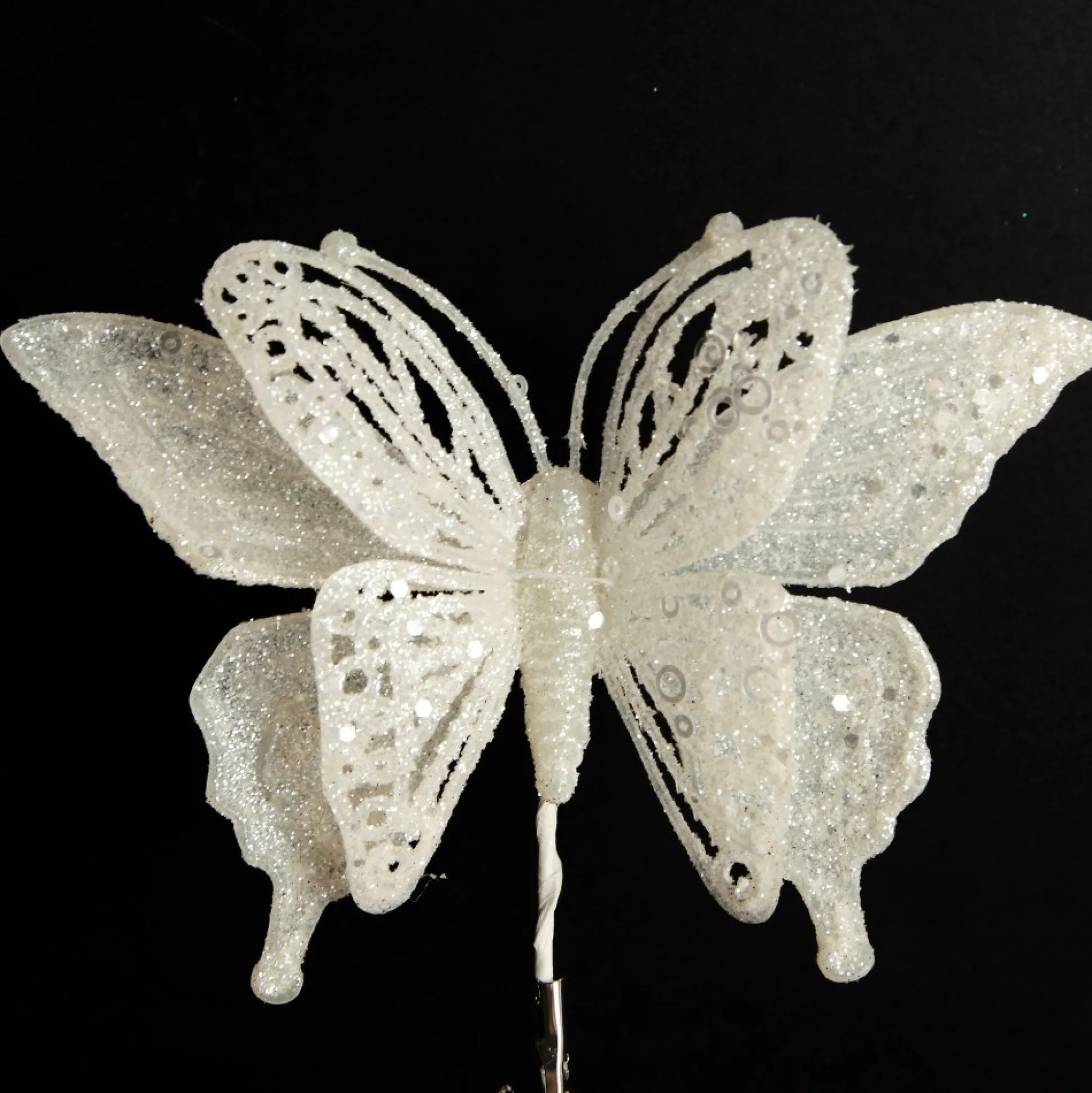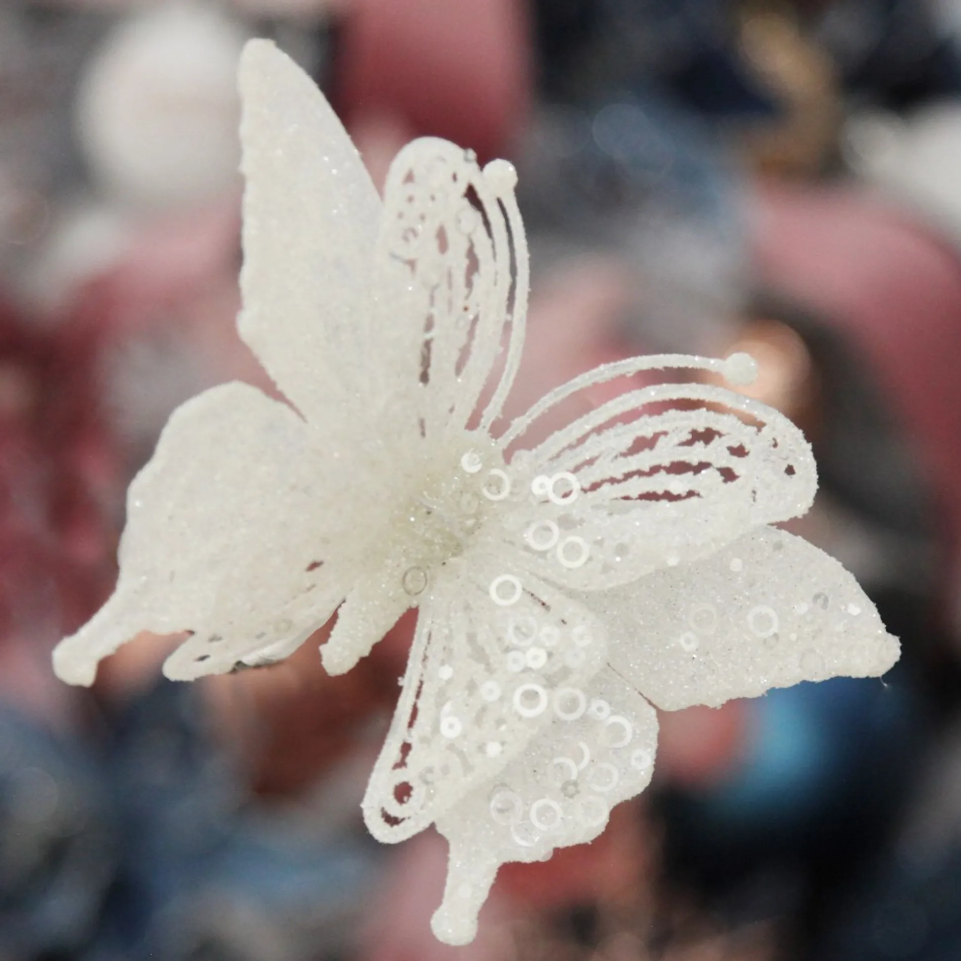 This White Glitter And Sequin Butterfly Clip Is The Perfect Way To Add A Delightful Touch To Your Christmas Tree Decorating. Its Unique Clip Design Makes It Easy To Secure To Your Christmas Tree, Garlands, Wreaths, And More, Or To Use As A Gift Topper Or Embellishment For Table Place Settings At Your Christmas Feasts.