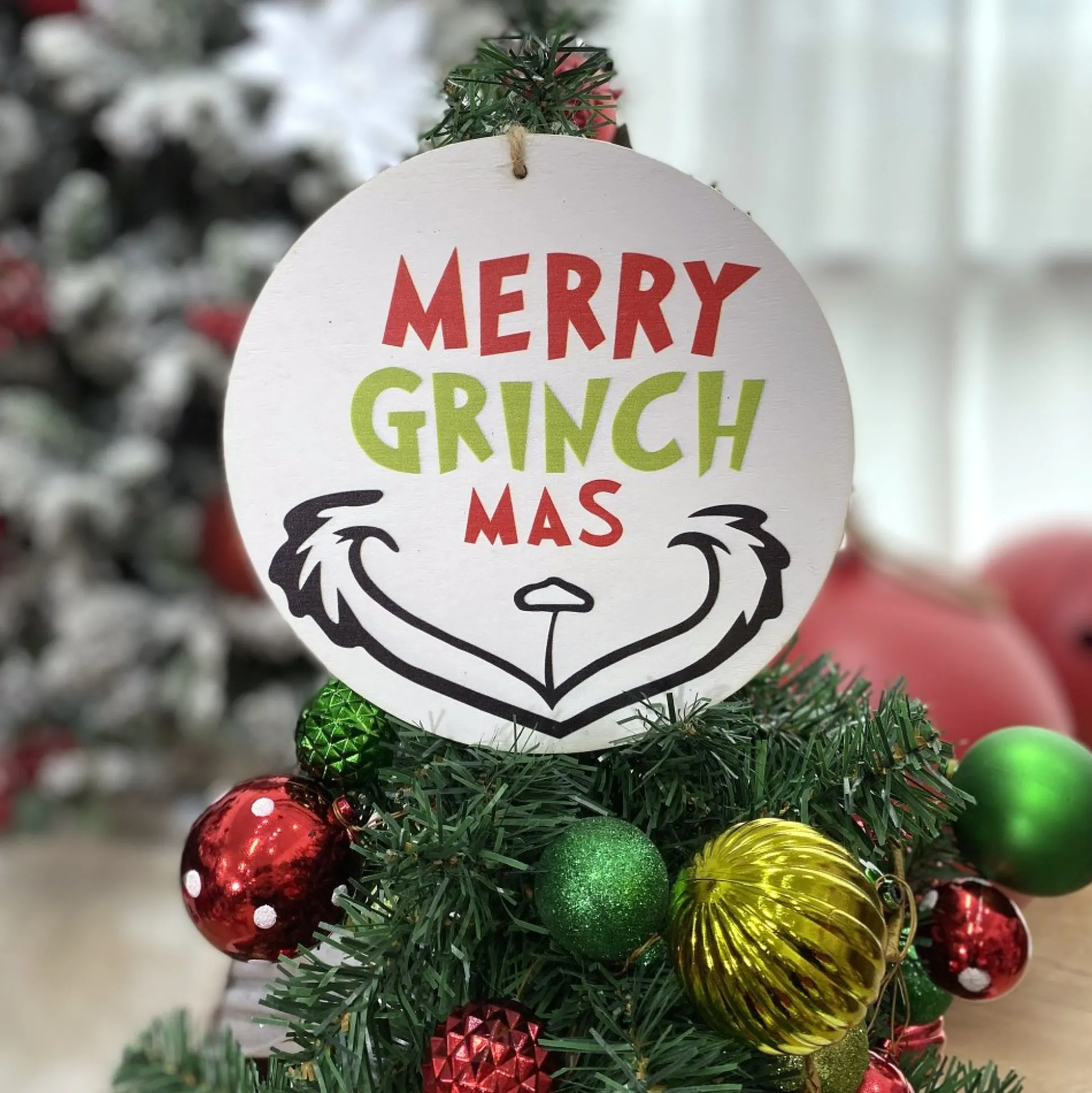 Decorate Your Home With This Striking White Merry Grinchmas Christmas Sign That’s Perfect For Any Grinch! This Christmas Sign Is Crafted From Natural Wood, Making It A Durable And Long-Lasting Decoration. The Timber Is Lightweight And Easy To Hang, So You Can Display It As A Focal Piece In Any Part Of Your Home. The Design Of This Sign Is Timeless And Elegant, Perfect For Any Holiday Decor. It Features A Fun ‘Merry Grinchmas’ Message And An Adorable Illustration Of That Iconic Grinch Smile!