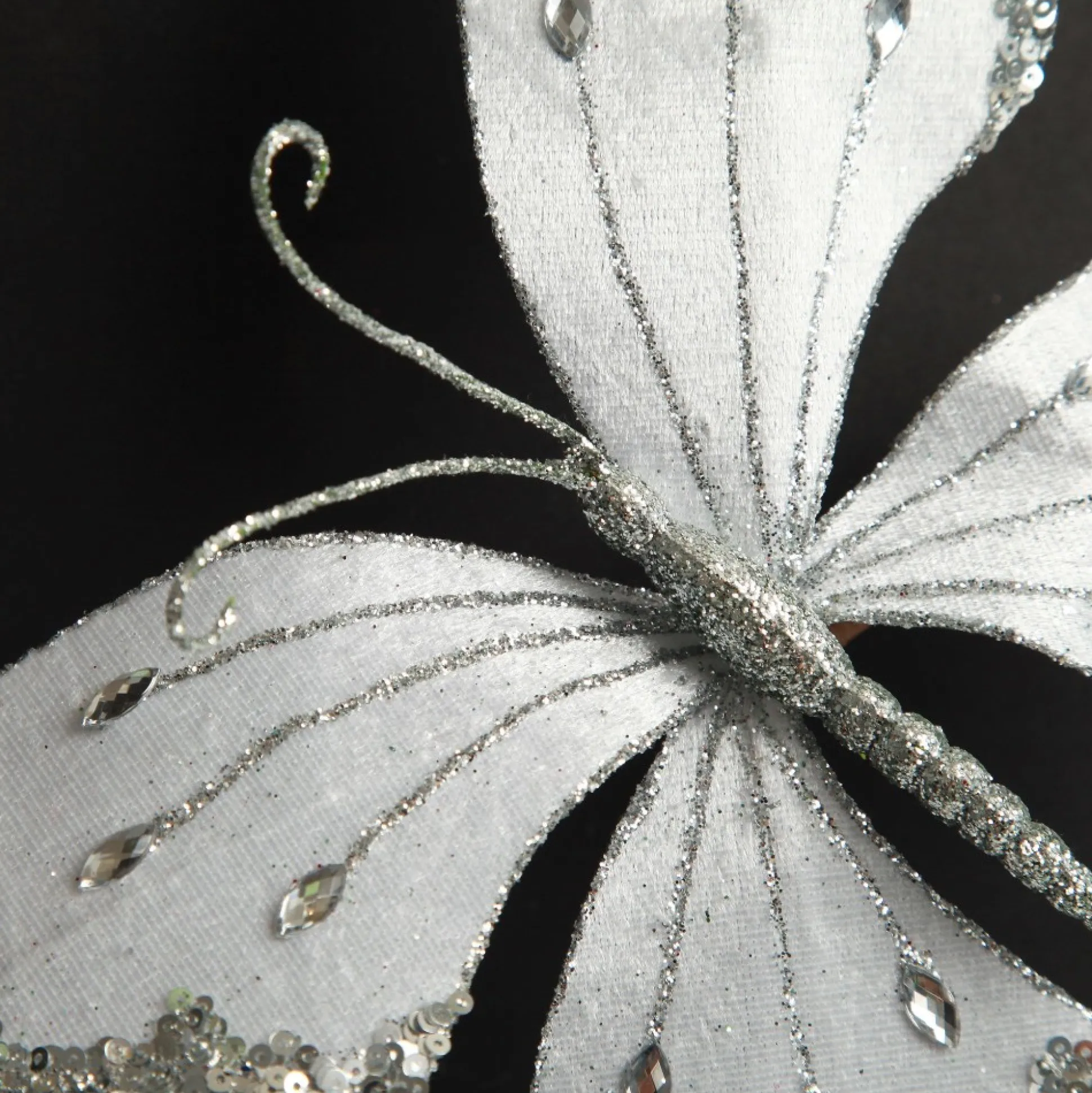 The Ideal Product To Add To A Home That Is Embracing Elegant Luxe Styling. With Its Sophisticated And Stylish Detailing, You Can Create An Inviting And Lavish Home That Will Wow Your Friends And Family! Our White Satin And Silver Sequin Butterfly Clip Is Shipped From Australia By The Christmas Cart.