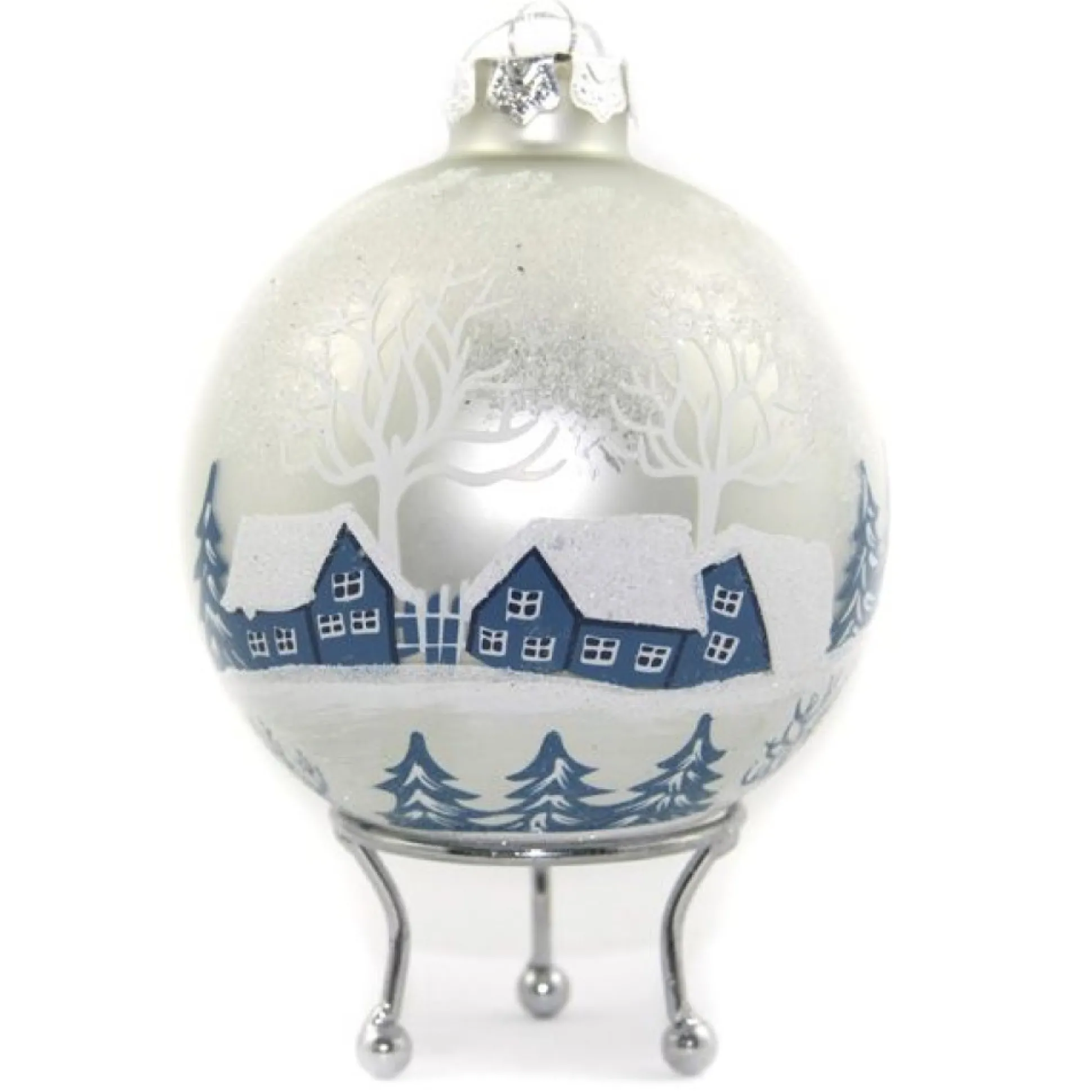 Infuse Your Home With Delightful Christmas Charm With This White Winter Church Christmas Bauble. Crafted From Seamless, High Quality Glass, This Bauble Features A Christmas Church Village In White And Blue, Complete With Snow And Christmas Pine Trees. This Bauble Comes Ready To Hang With A Metal Top And Thread And Can Be Personalised With A Name And Year Of Your Choice In Our Unique Style Of Glitter Calligraphy.