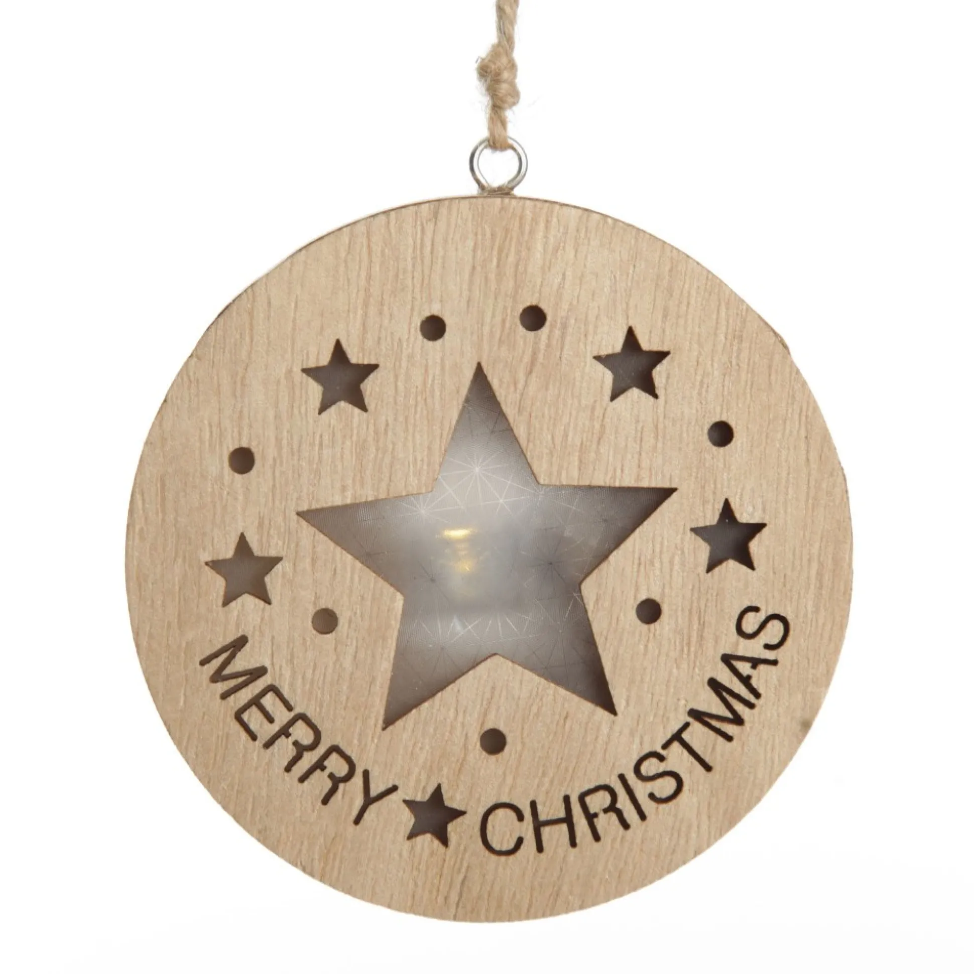 Brighten Up Your Christmas Tree With This Wooden Lightup Star Cut Out Tree Decoration. Crafted From Durable, Lightweight Wood With A Smooth, Natural Grain Finish, This Decoration Features A Collection Of Stars And A ‘Merry Christmas’ Cut Out Of The Wood.